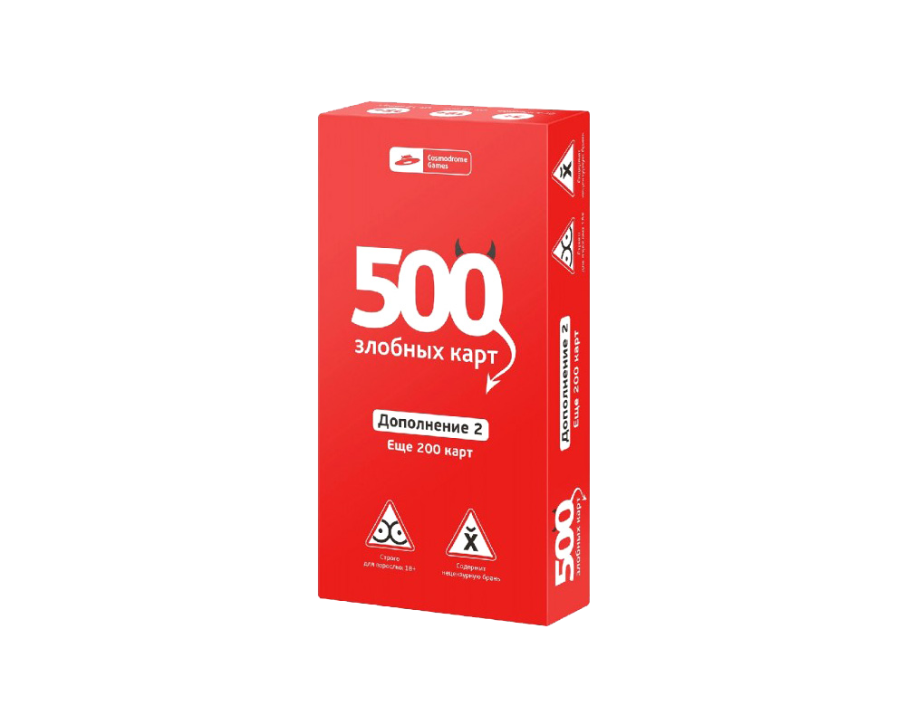 Игра "500 злобных карт" - веселая и взрывная игра для вечеринки, авторизованная локализация популярной американской игры Cards Against Humanity. Игра строится на спонтанном, иногда абсурдном, юморе: один игрок тащит из колоды историю или вопрос, а другие — выбирают из 10 доступных им вариантов самый смешной ответ. В игре много юмора на грани и “взрослых” тем.