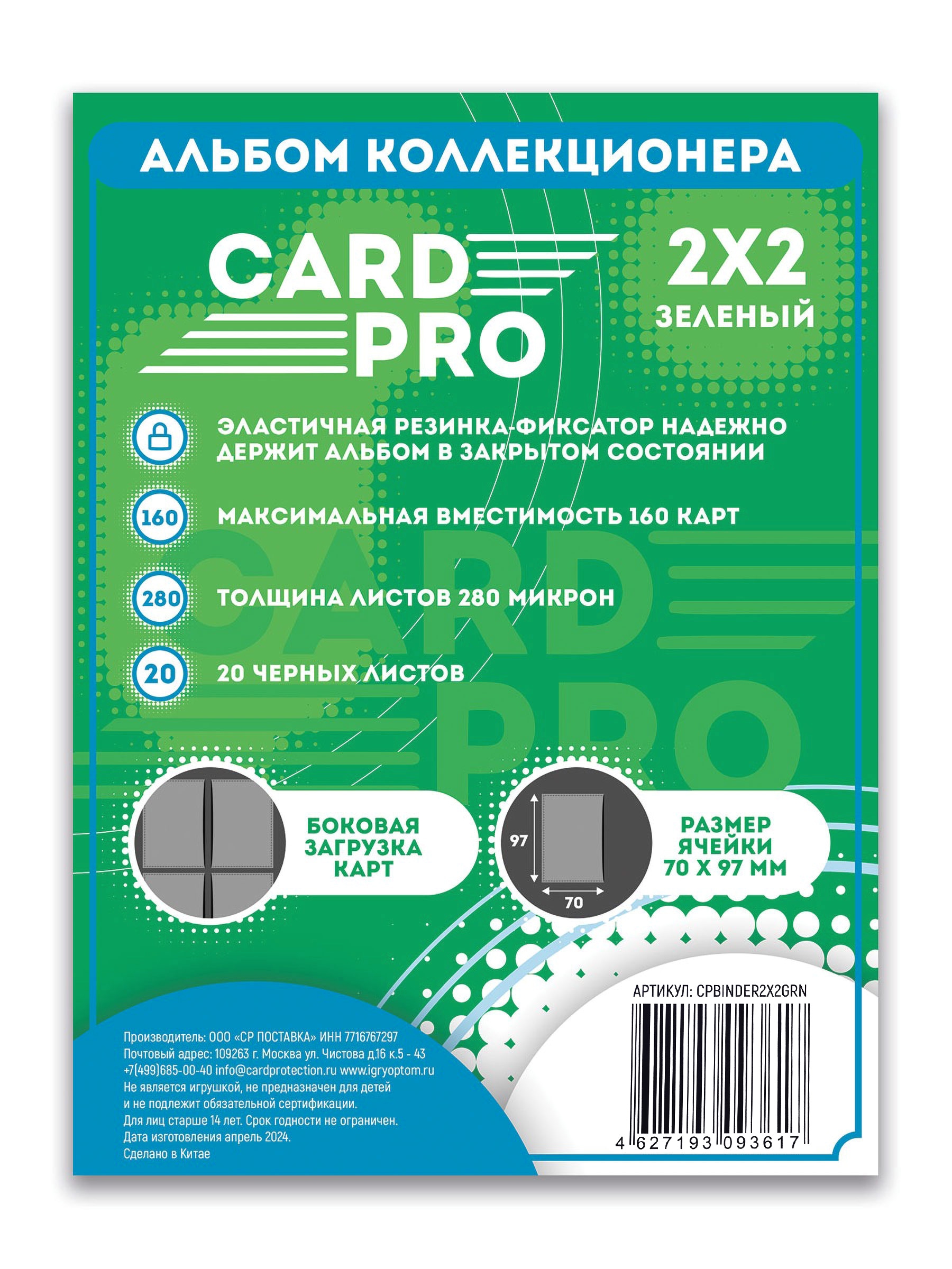 Альбом Card-Pro c 20 встроенными листами 2x2 - Зеленый