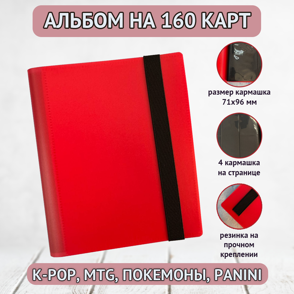 Альбом вмещает 160+ карт, позволяет хранить более одной карты в ячейке и идеально подойдет для карт размерами до 69х94 мм.