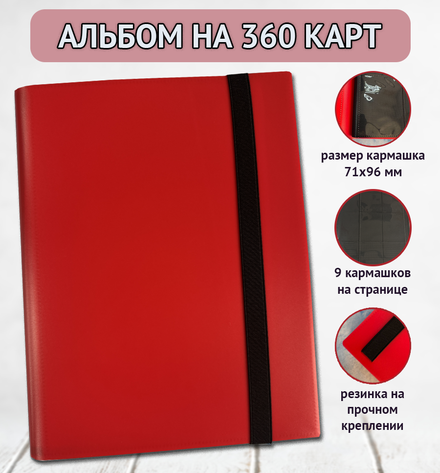 Альбом вмещает 360+ карты, позволяет хранить более одной карты в ячейке и идеально подойдет для карт размерами до 69х94 мм.