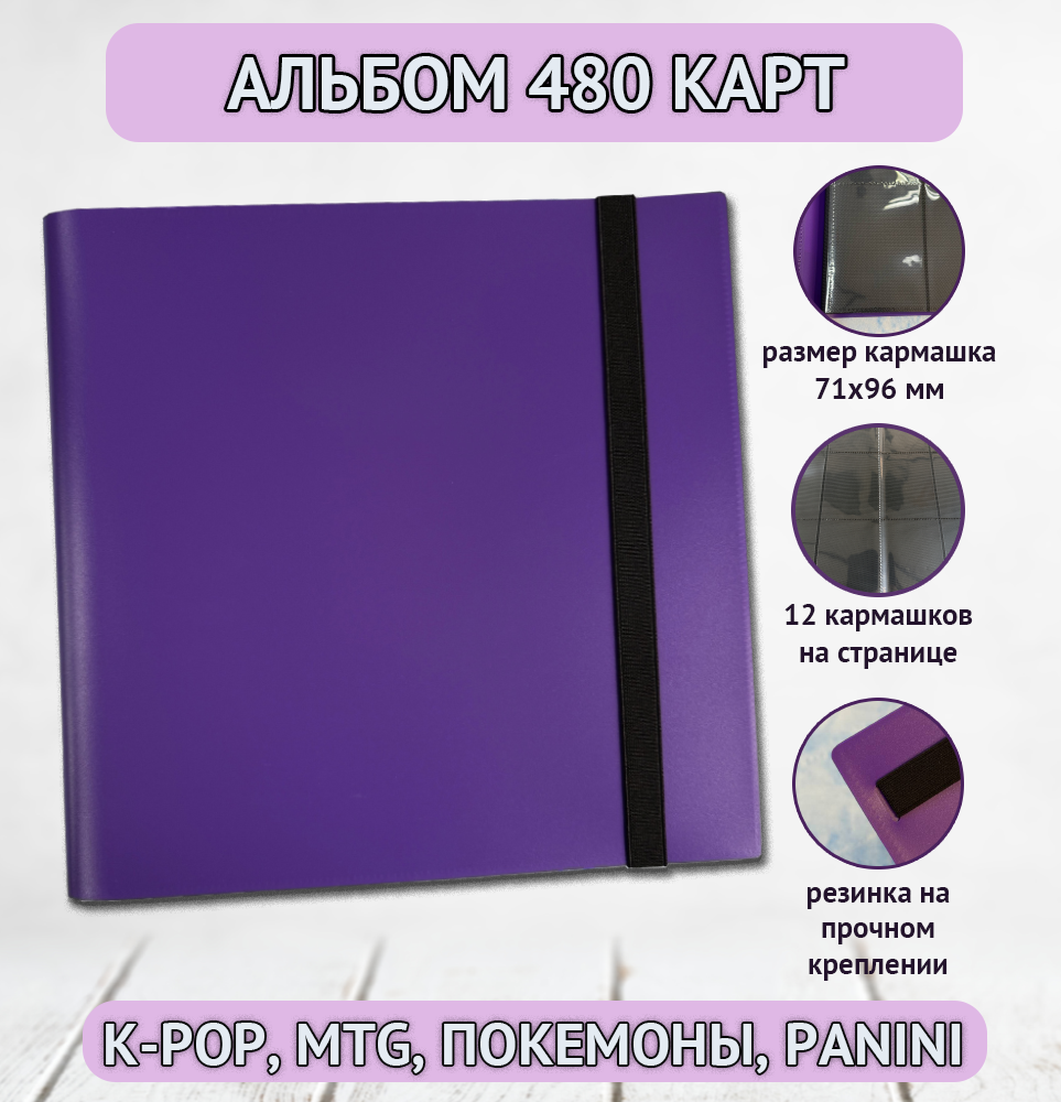 Альбом вмещает 480+ карт, позволяет хранить более одной карты в ячейке и идеально подойдет для карт размерами до 69х94 мм.