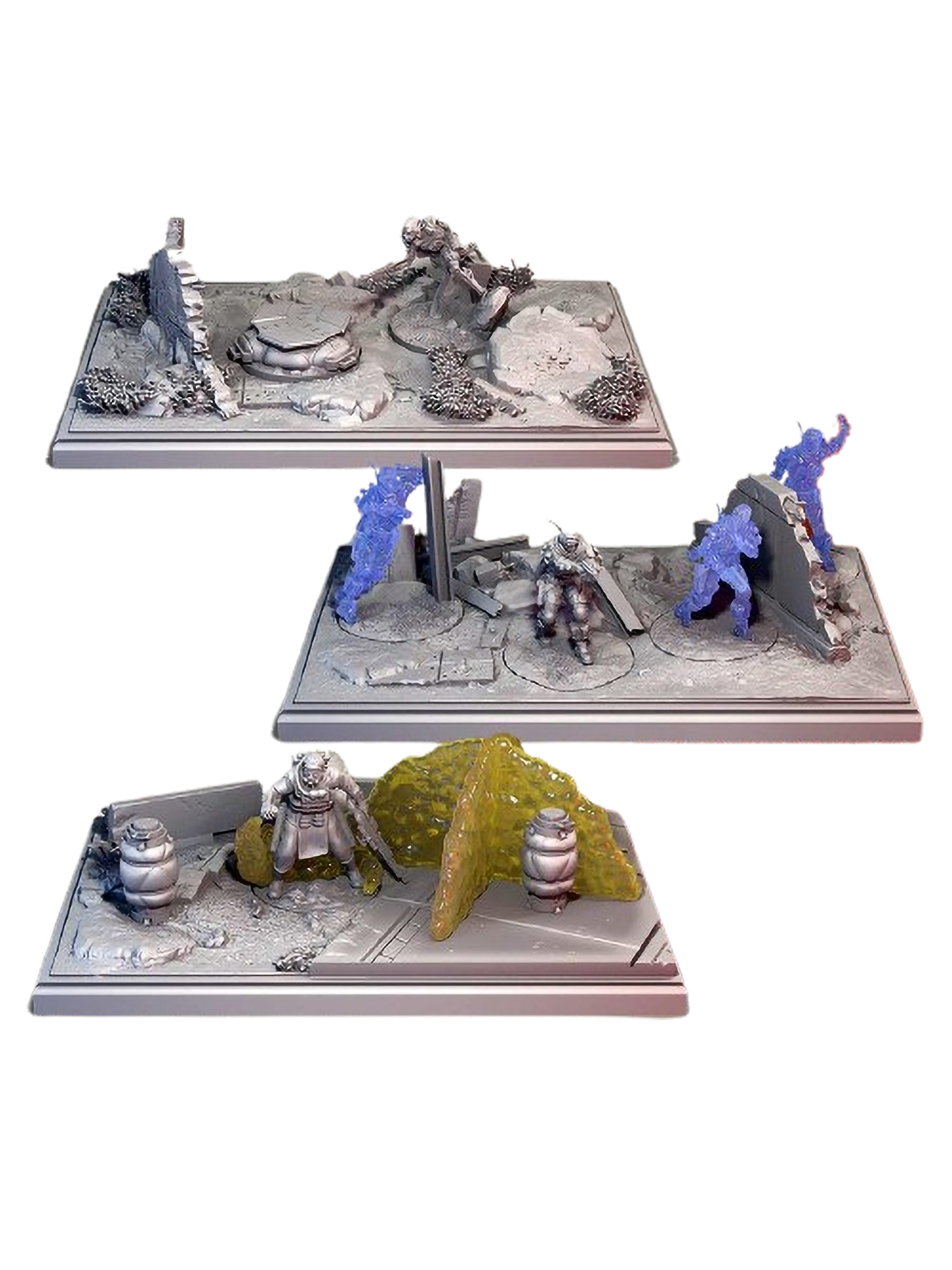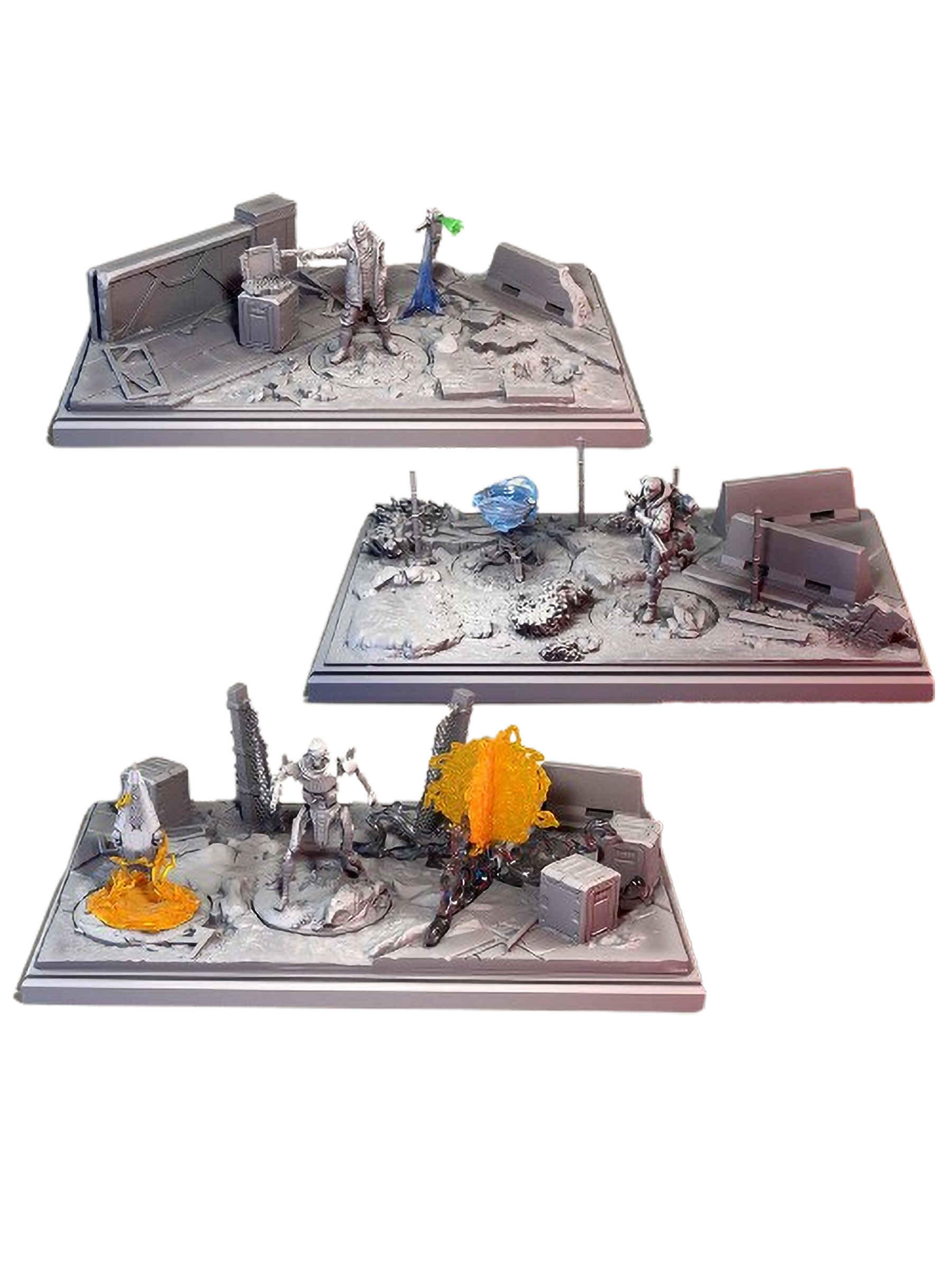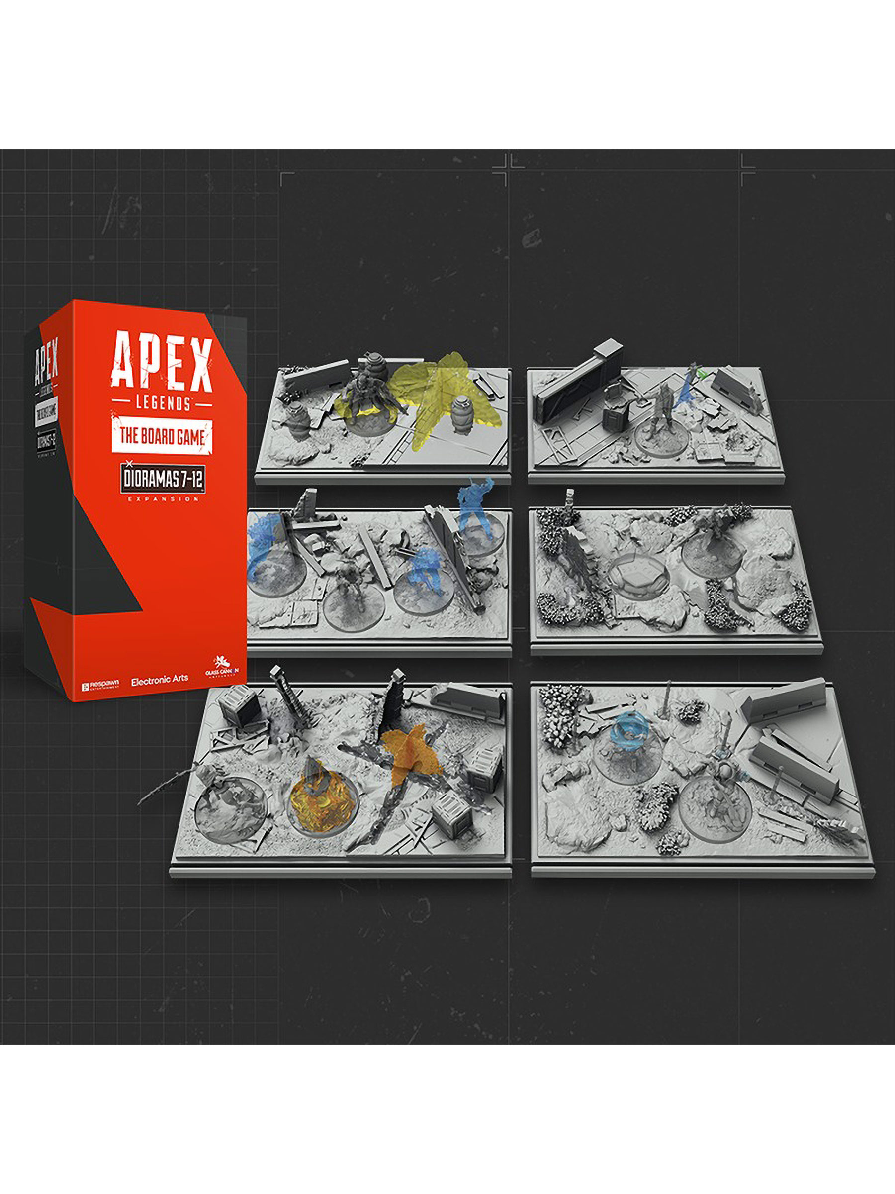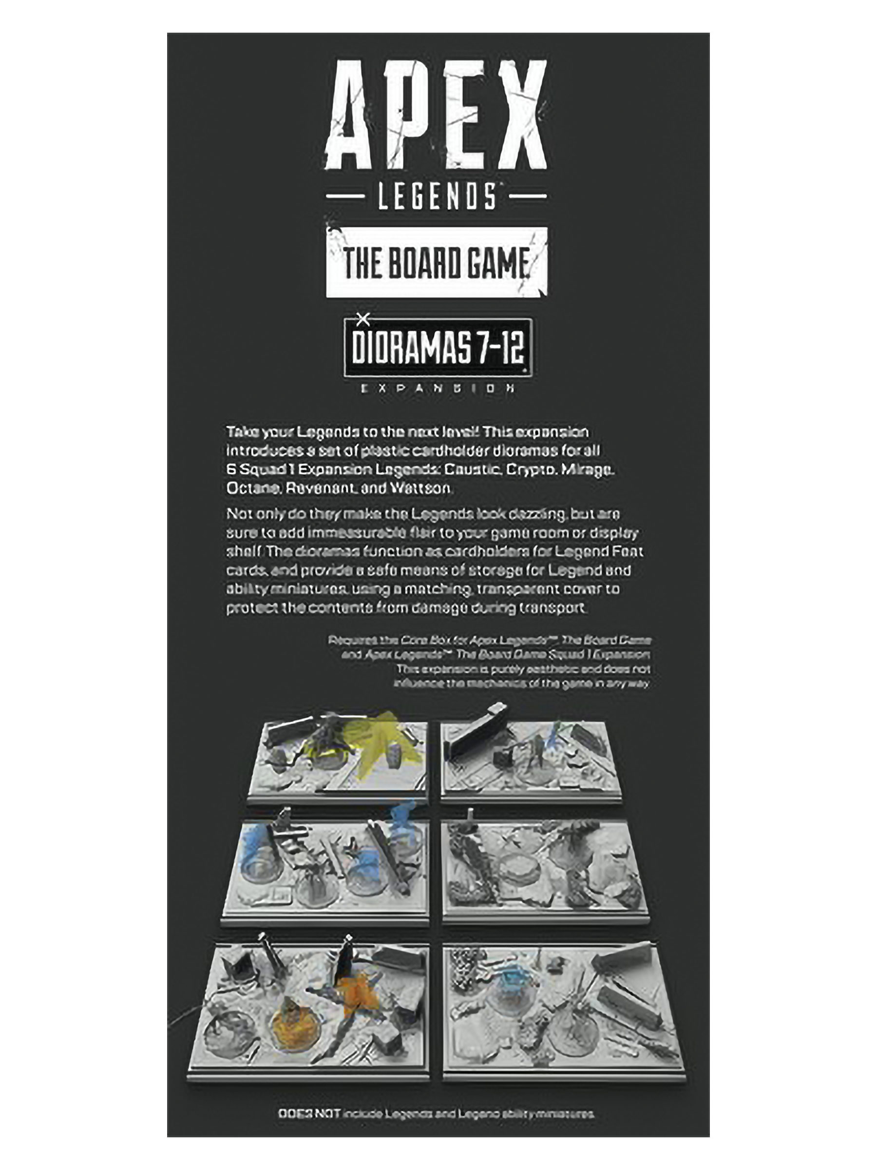В дополнение входят 6 диорам для всех легенд из дополнения Отряд 1: Каустика, Крипто, Миража, Октейна, Ревенанта и Ваттсон. Диорамы служат держателями для карточек с навыками легенд и обеспечивают безопасное хранение миниатюр легенд и их способностей, используя прозрачную крышку для защиты содержимого от повреждений во время транспортировки.