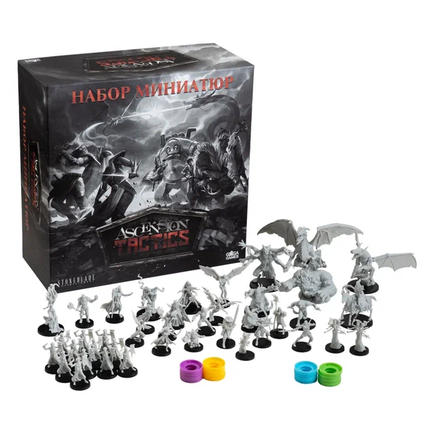 Набор миниатюр для Ascension Tactics — это 45 высокодетализированных 3D-фигурок чемпионов. Вы можете заменить картонные компоненты из базовой коробки на комплект миниатюр, чтобы сделать игру более тактильной и атмосферной.