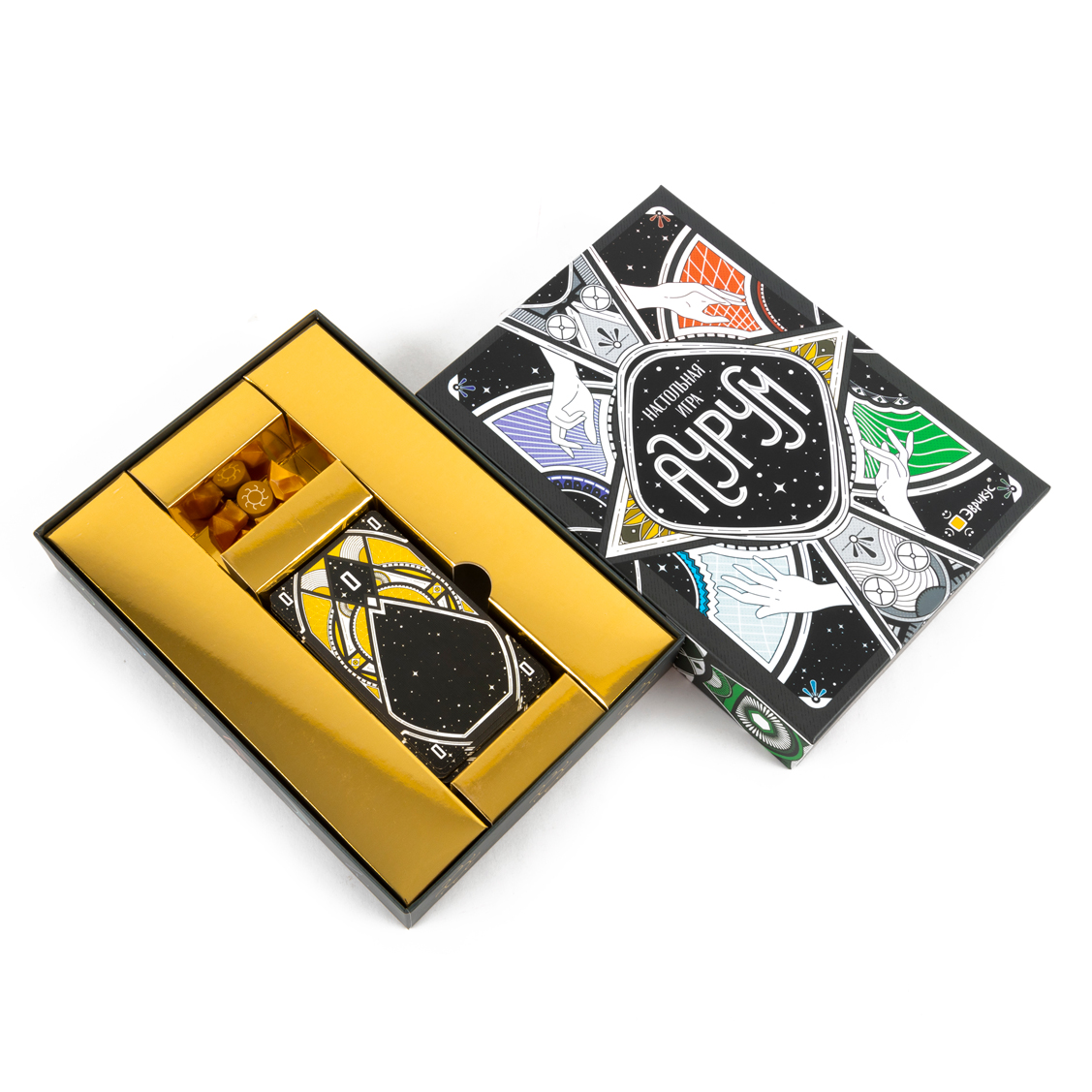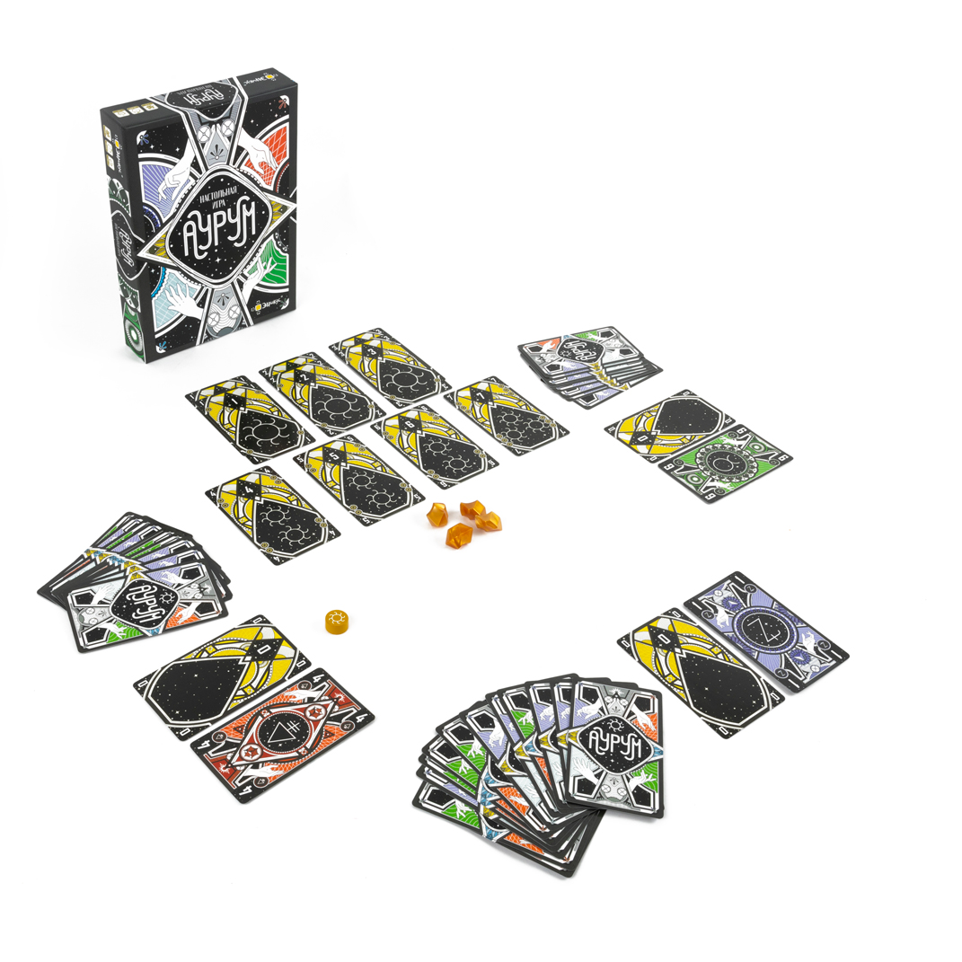 «Аурум» — это игра с механикой взяток, в которой вы выступаете в роли алхимиков, преобразующих металлы в золото. Вы зарабатываете очки, получая золото и верно предполагая количество взяток, которые сможете выиграть в каждом раунде.