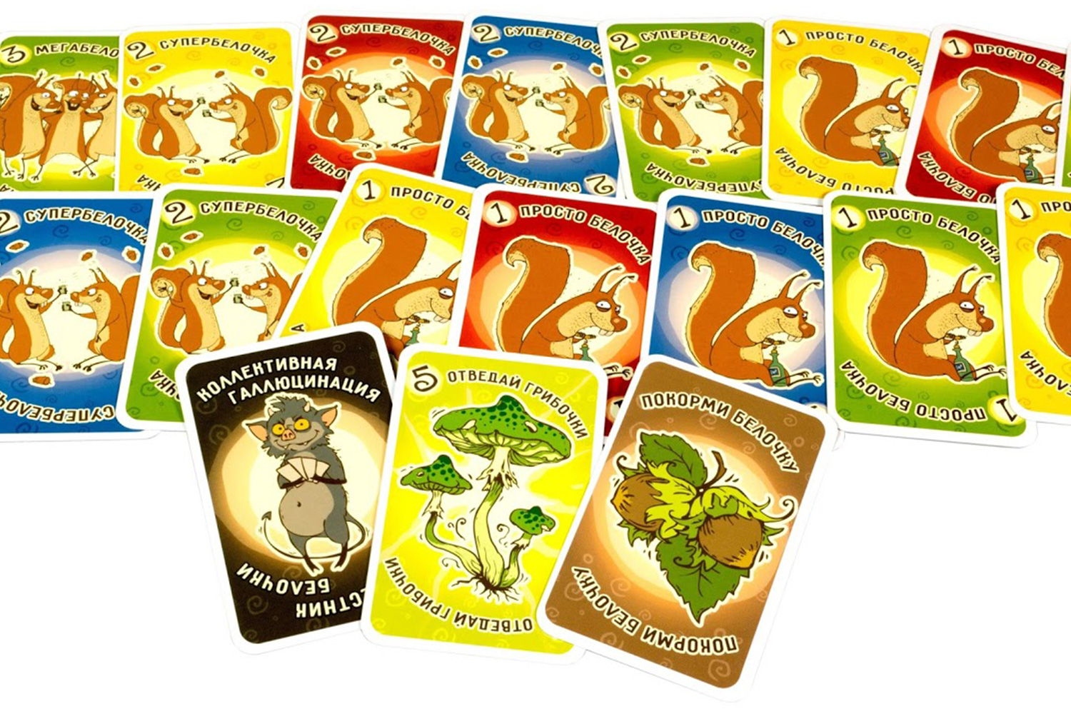 «Бело4ка» — карточная игра на скорость реакции и внимательность. Она отлично подойдёт для взрослых вечеринок с употреблением спиртного*, но и без алкоголя в неё можно сыграть на ура. Хлопайте руками по картам, следите за мельтешением разноцветных белочек и постарайтесь не уклюкаться до зелёных чёртиков в глазах.