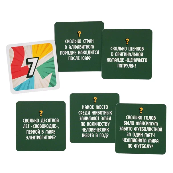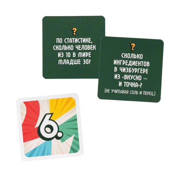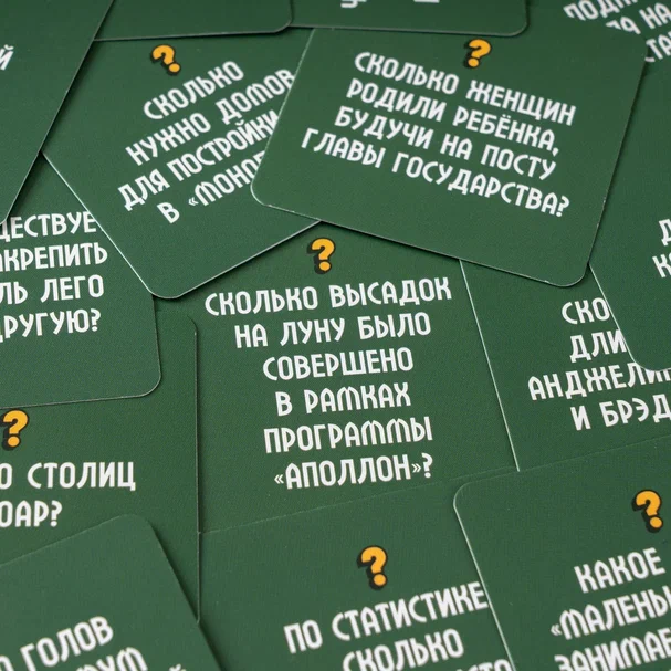 На карточках вас ждут нетривиальные, любопытные, а порой и весьма неожиданные факты. Сколько в мире женщин-миллиардеров? Как долго спит белый медведь? На сколько процентов ДНК человека отличается от генома гориллы? Ответами на все вопросы станут числа от 0 до 10. Здорово, если ваше необычное знание пригодится и наверняка впечатлит собравшихся. Но вряд ли кто-то отгадает все факты, так что вам точно будет интересно обсуждать вопросы в команде, прикидывать и строить теории.