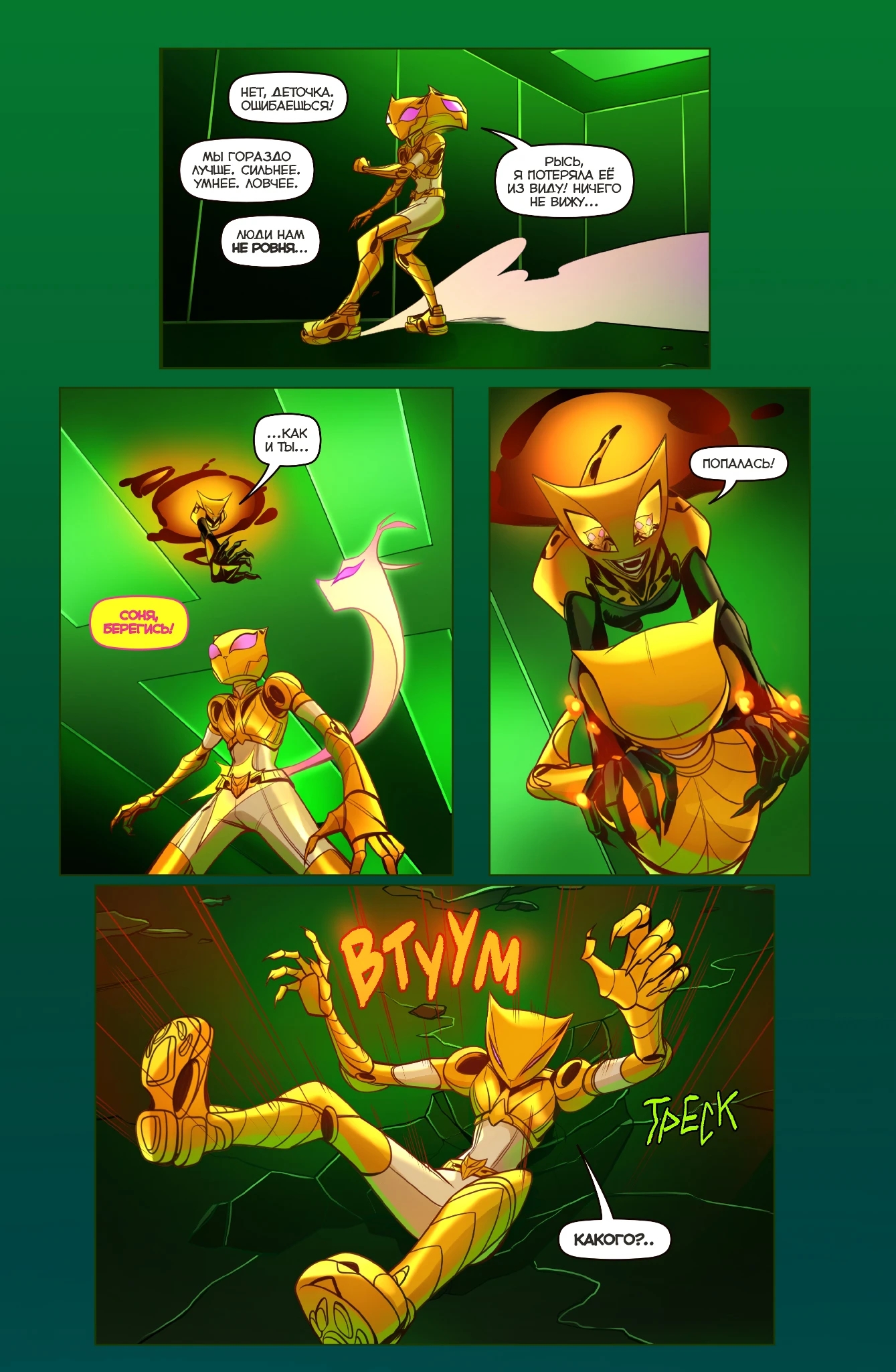 Сумеет ли Рысь выбраться из плена и сохранить свои силы? Что скрывает таинственная Варя, явно знающая о тотемах больше обычных людей? Откуда взялся модный инвестор Игорь, узурпировавший власть в корпорации? И куда всё-таки делся папа Сони Евгений Демидов, из-за которого всё и пошло под откос?!! Ответы на эти вопросы ждут вас в новой книге вебтун-серии комиксов «BUBBLE Рысь»!