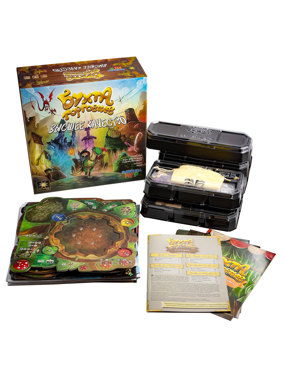 В дополнение к новым торговцам в этой коробке вы найдете Фестиваль гильдий, который еще больше разнообразит ваши игры. Новая часть игрового поля присоединяется снизу к уже имеющейся. На ней новые шкалы для каждой гильдии и новые возможности взаимодействия с ними. Волшебники могут зачаровать ваши товары, чтобы они стали дороже, а разбойники помогут вам подставить других игроков и перекинуть на них свою порчу. И это еще не все, что вы сможете найти в модулях этого дополнения! Вас ждут новые горожане, паладины и многое другое!