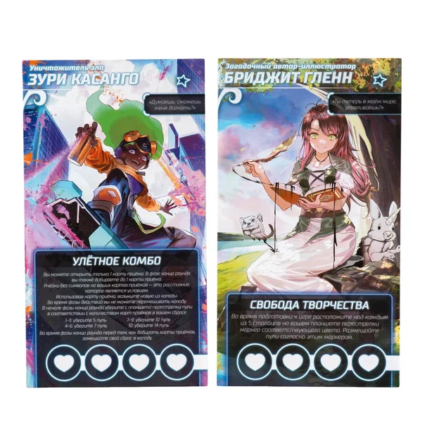 Проявите своё творчество в соревновательном режиме, а затем переверните планшет героини и сразитесь с каждой из них как с боссом в кооперативе. Возможно, вы познаете настоящую силу их искусства... Что ж, чудаковатые персонажи с уникальными стилями игры всегда были визитной карточкой серии Bullet. Вот и эта креативная коробочка готова занять своё место в сердцах любителей анимешных девчонок и жарких перестрелок!