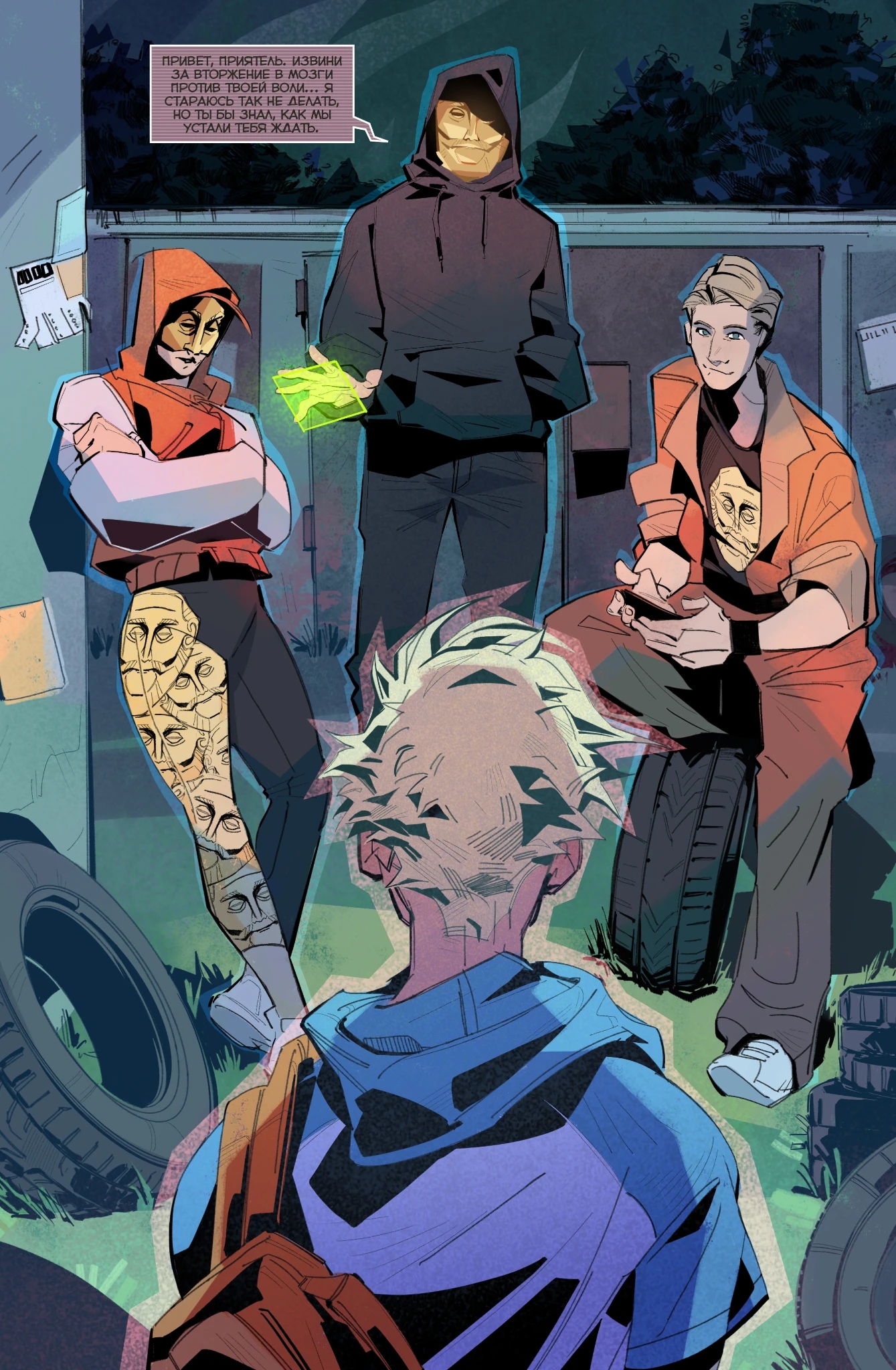 А также уникальные дополнительные материалы: концепт-арты персонажей, скетчи и эскизы обложек и комментарии сценаристов и художников комикса.