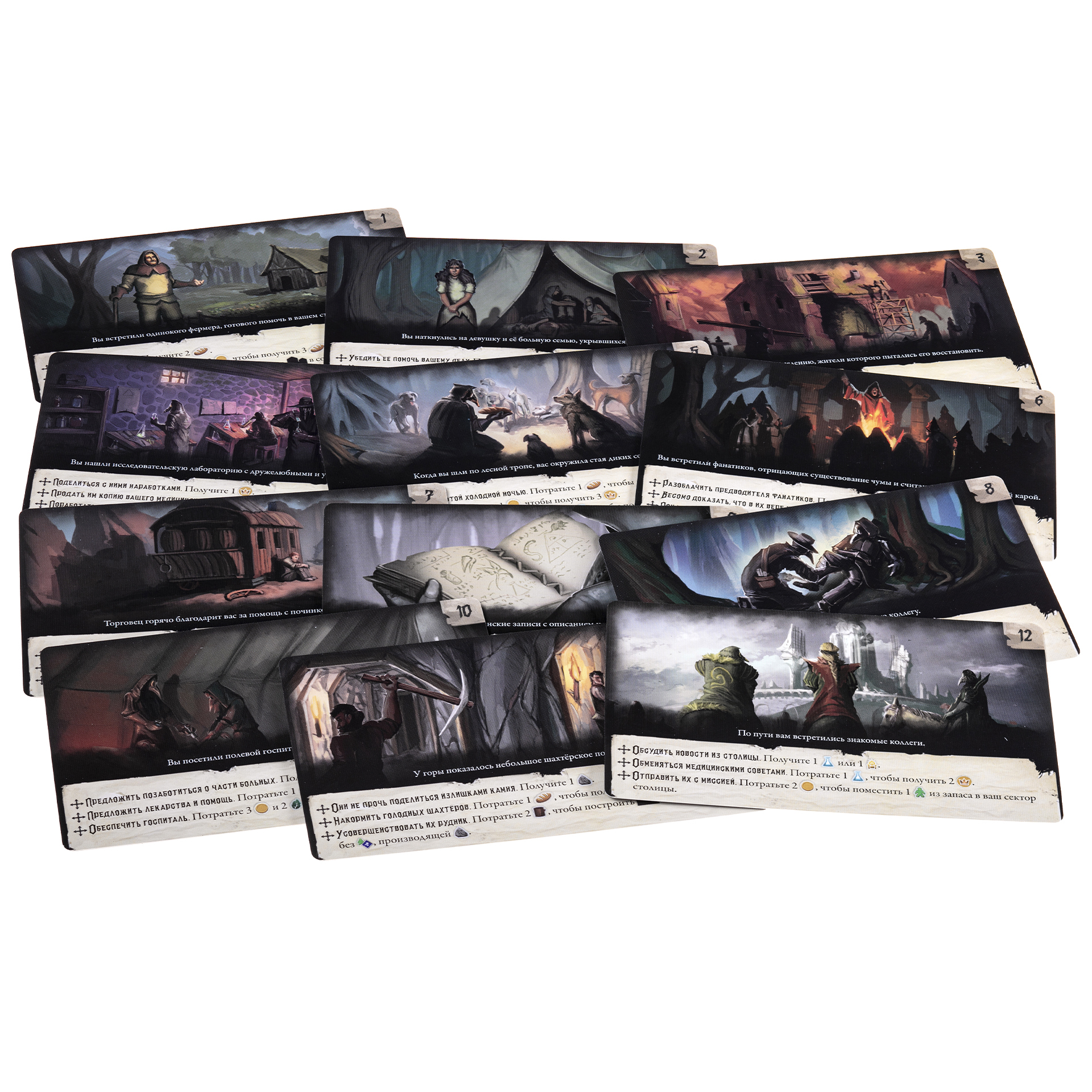 Это мини-дополнение добавляет в игру 12 карт дорожных событий, которые могут произойти с чумными докторами во время их странствий по империи.