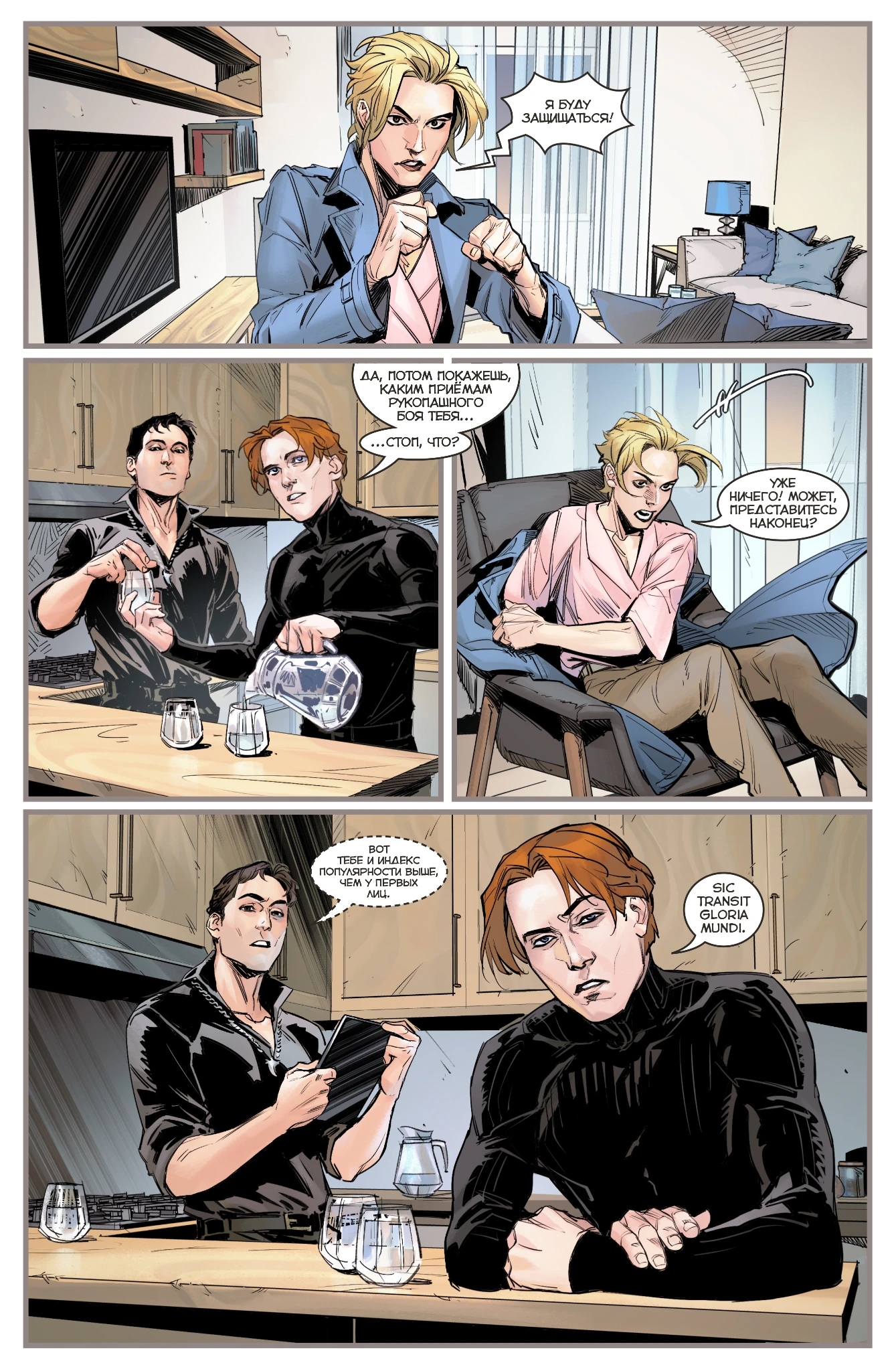 А также уникальные дополнительные материалы: концепт-арты персонажей, скетчи и эскизы обложек и комментарии сценаристов и художников комикса.