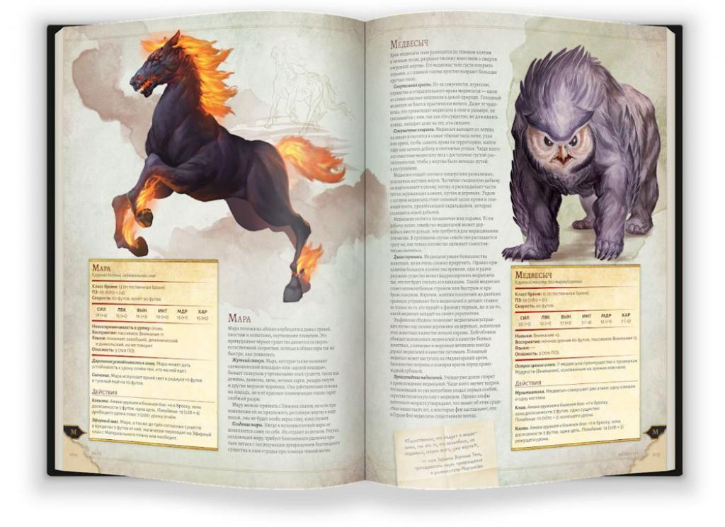 Здесь есть все самые известные чудовища миров D&D. Они снабжены готовыми для игры блоками параметров и захватывающими описаниями, подстёгивающими ваше воображение.