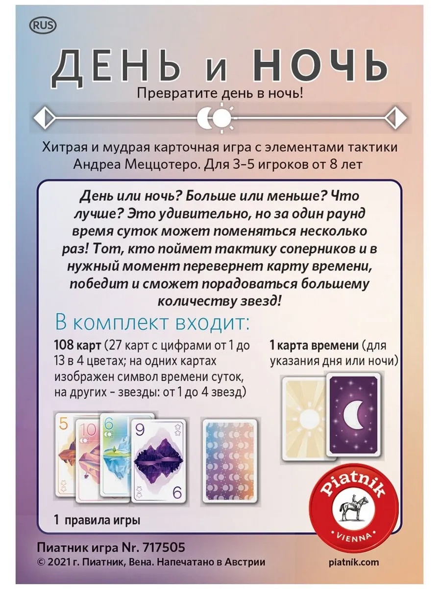 День сменяется ночью, а ночь сменяется днём. И если в жизни на это уходит достаточное количество времени, и этот момент не проходит незамеченным, то в карточной настольной игре "День и ночь" события развиваются куда стремительнее!