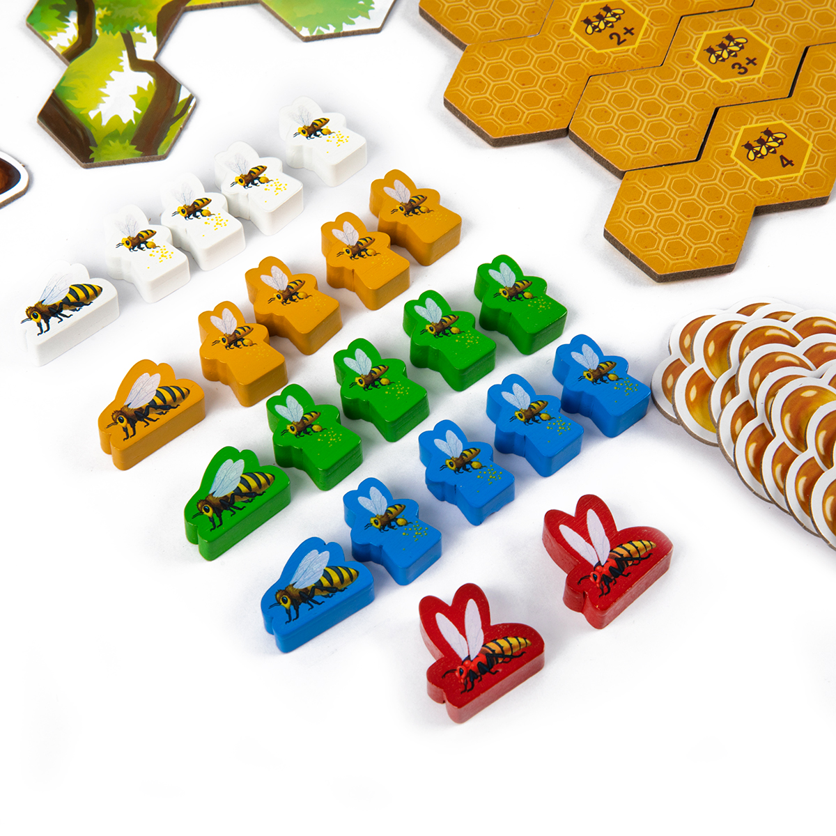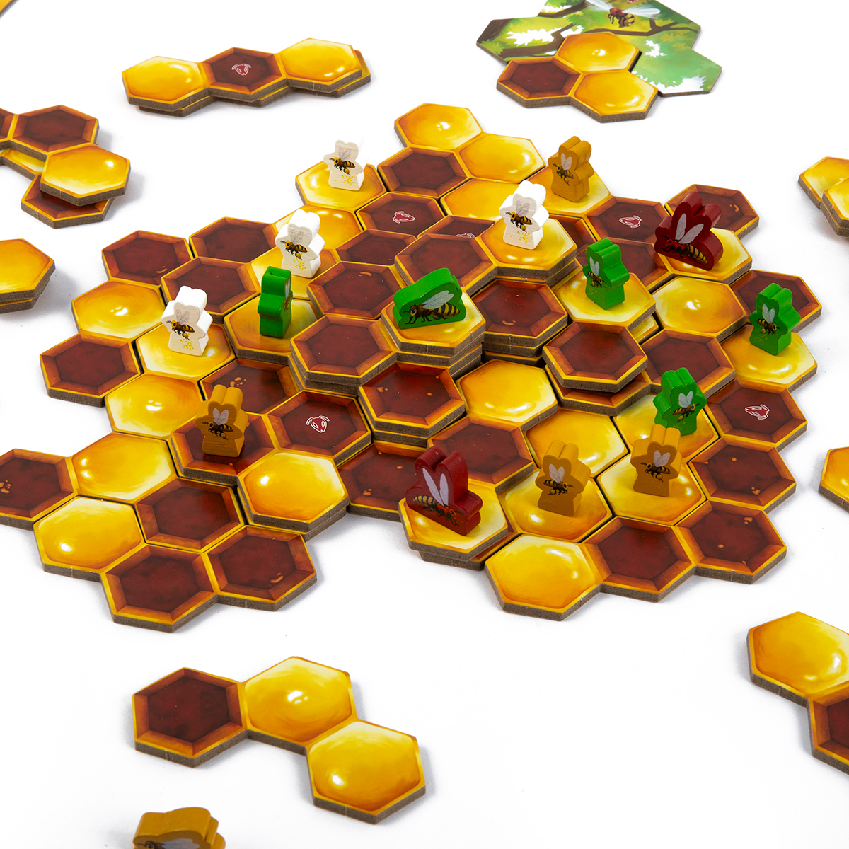 После строительства улья поместите на добавленный вами тайл сот 1 пчелу, строго на ячейку с мёдом. Вы можете выставить новую пчелу из вашего запаса или переместить пчелу, выставленную ранее. Каждая пчела принесёт вам победные очки в конце игры в зависимости от того, на каком уровне улья она находится. В улье может быть только 1 пчелиная королева, и она может принести её владельцу 4 победных очка.