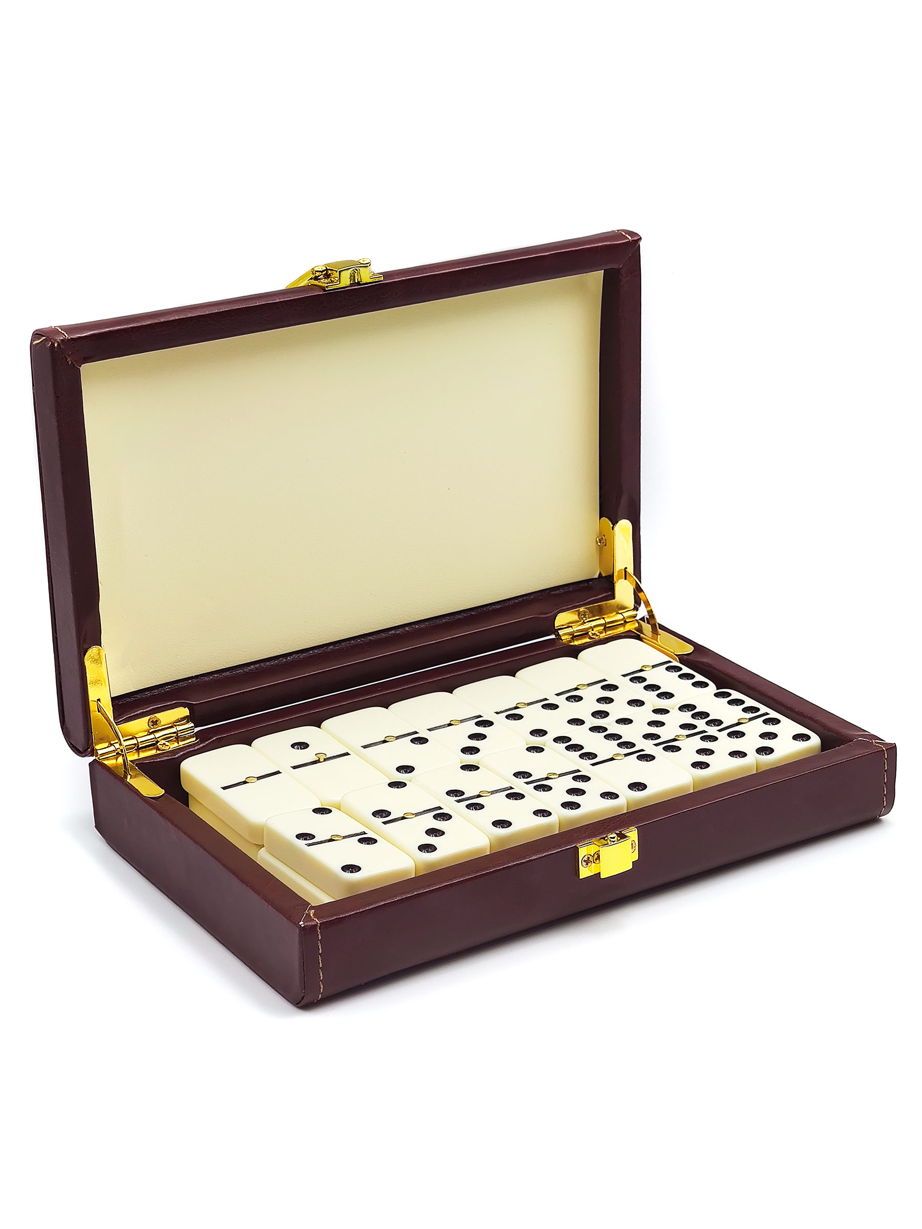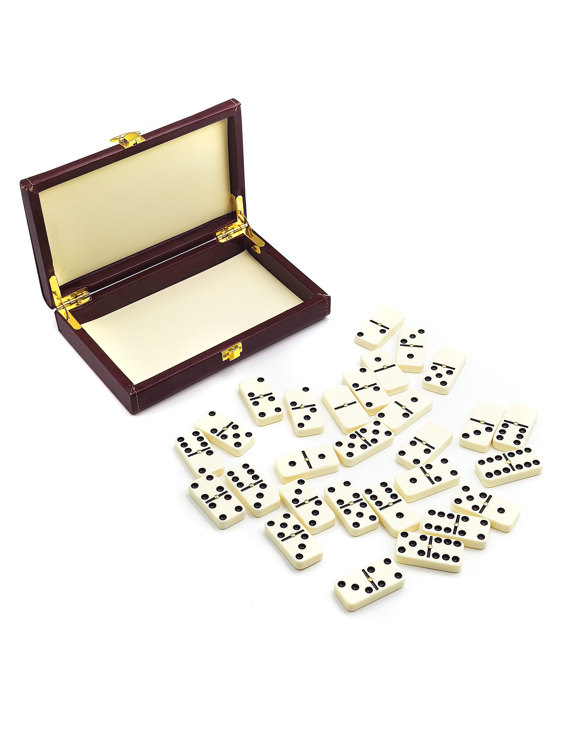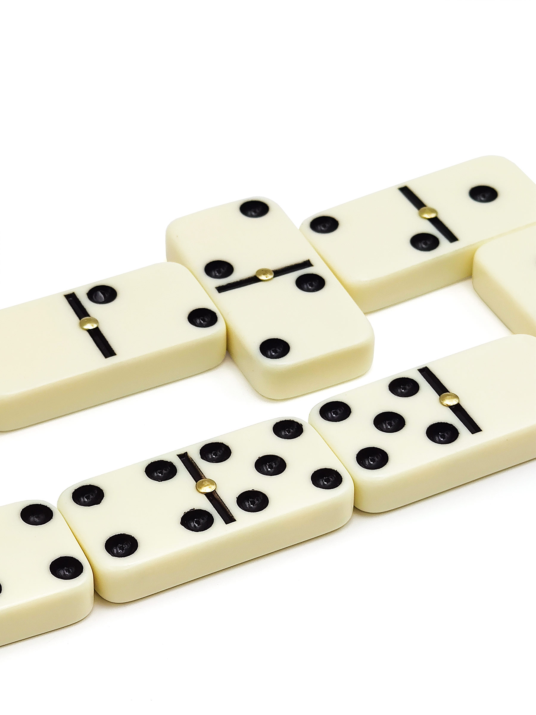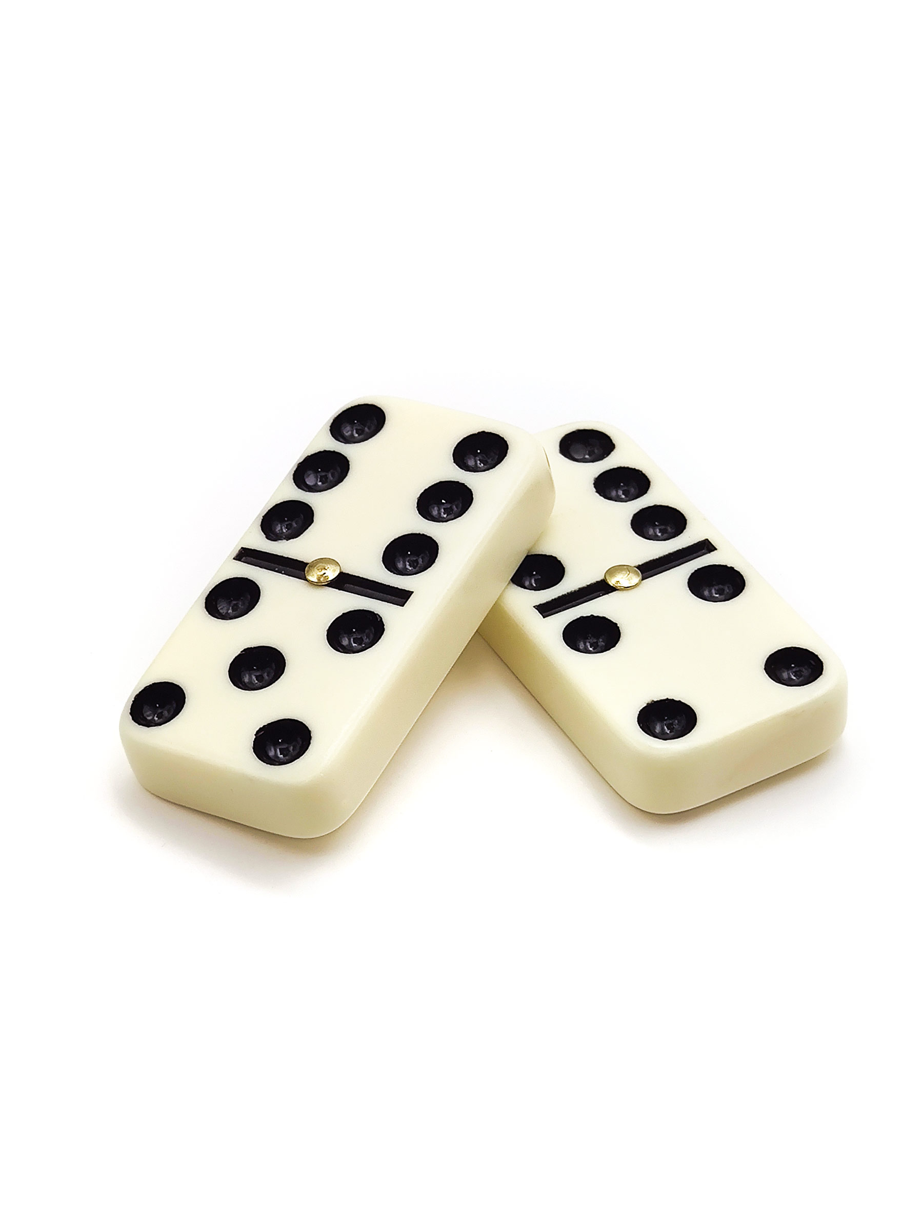 Насладитесь игрой высшего класса с набором домино Premium, выполненным из прочного пластика кремового цвета с чёрными точками. 28 гладких, тяжёлых фишек идеально лежат в руке и приятно звучат при выкладывании.
