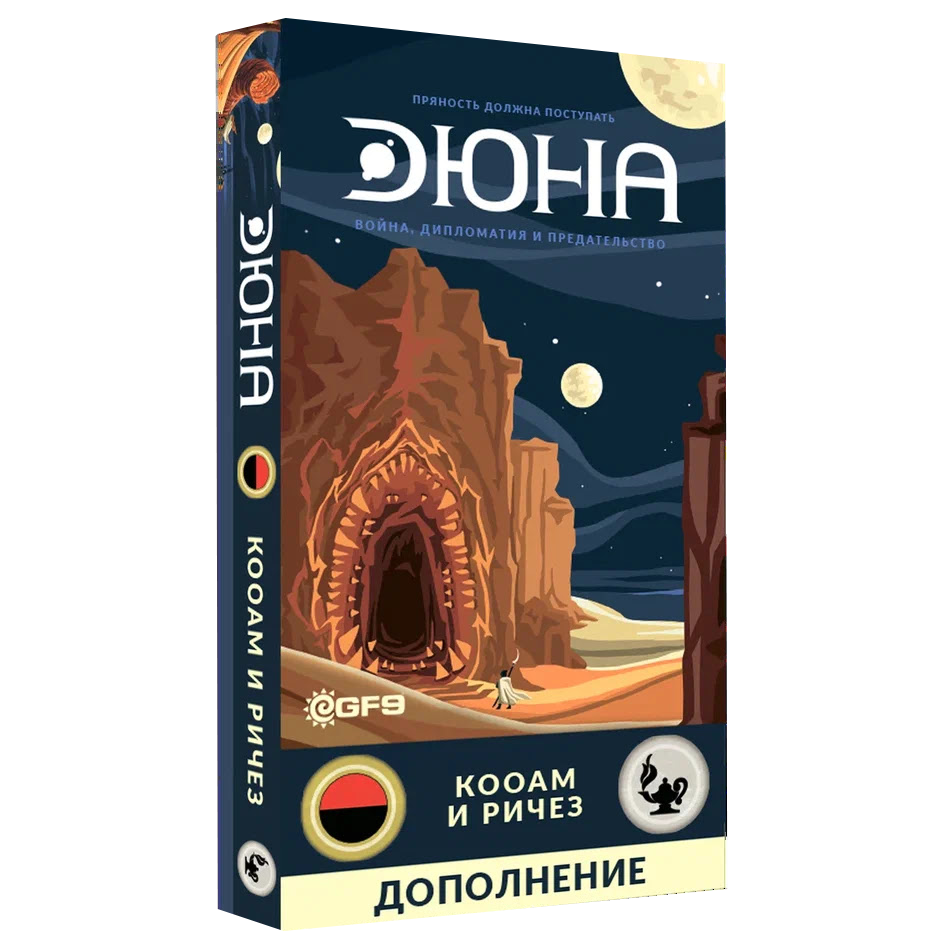 В борьбу за контроль над Арракисом включаются 2 новые фракции. Что, если бы Дом Ричезов, знаменитый уникальными технологиями, вмешался в ход событий? Что, если бы корпорация КООАМ использовала свои активы, чтобы собрать армию и напрямую влиять на добычу Пряности? Преимущества Дома Ричезов и КООАМ позволят создать ещё больше уникальных ситуаций на вашем игровом столе!