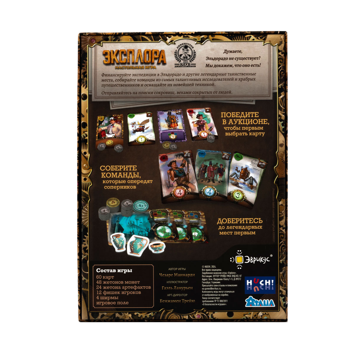 «Эксплора» — настольная игра, в которой вы будете набирать команды, в которых потенциально может быть исследователь, экипаж и транспортное средство, чтобы отправить их в экспедиции в мифические места по всему миру и найти там наиболее ценные артефакты. Основной механикой игры является аукцион: вы поборетесь за право выбирать карту с рынка раньше соперников, а также изменить позицию своей фишки инициативы (игрок с наибольшей ставкой продвигает свою фишку вперёд, а с самой маленькой ставкой - назад, теряя инициативу). Для того, чтобы получить желанные артефакты, приносящие победные очки в конце игры, вам нужно набрать сильную команду, которая соответствует текущей экспедиции, а ещё занимать выгодную позицию на шкале инициативы.