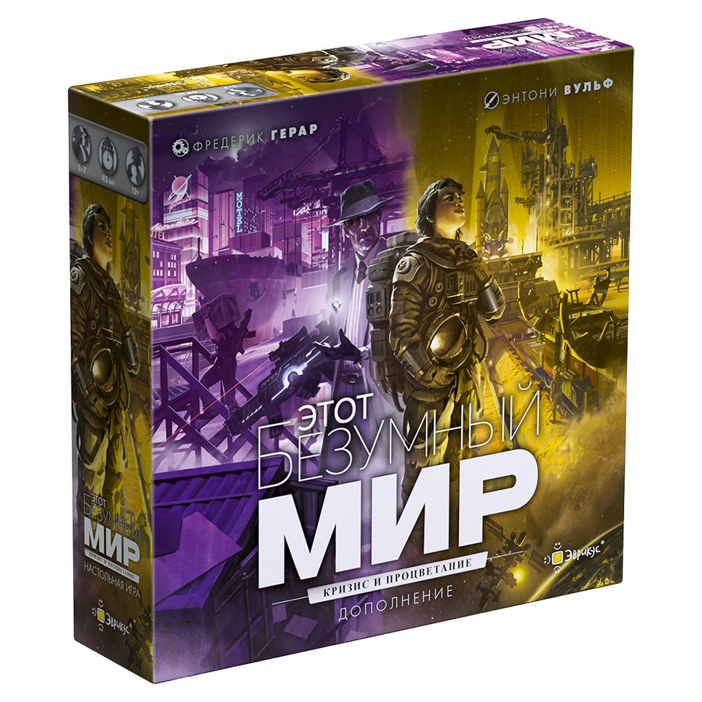 «Этот безумный мир: Кризис и процветание» - большое дополнение, добавляющее возможность играть в ЭБМ 7 участникам, а также привносит новые игровые элементы: кризис и двойная прибыль. Дополнение может быть использовано в соло-режиме игры.