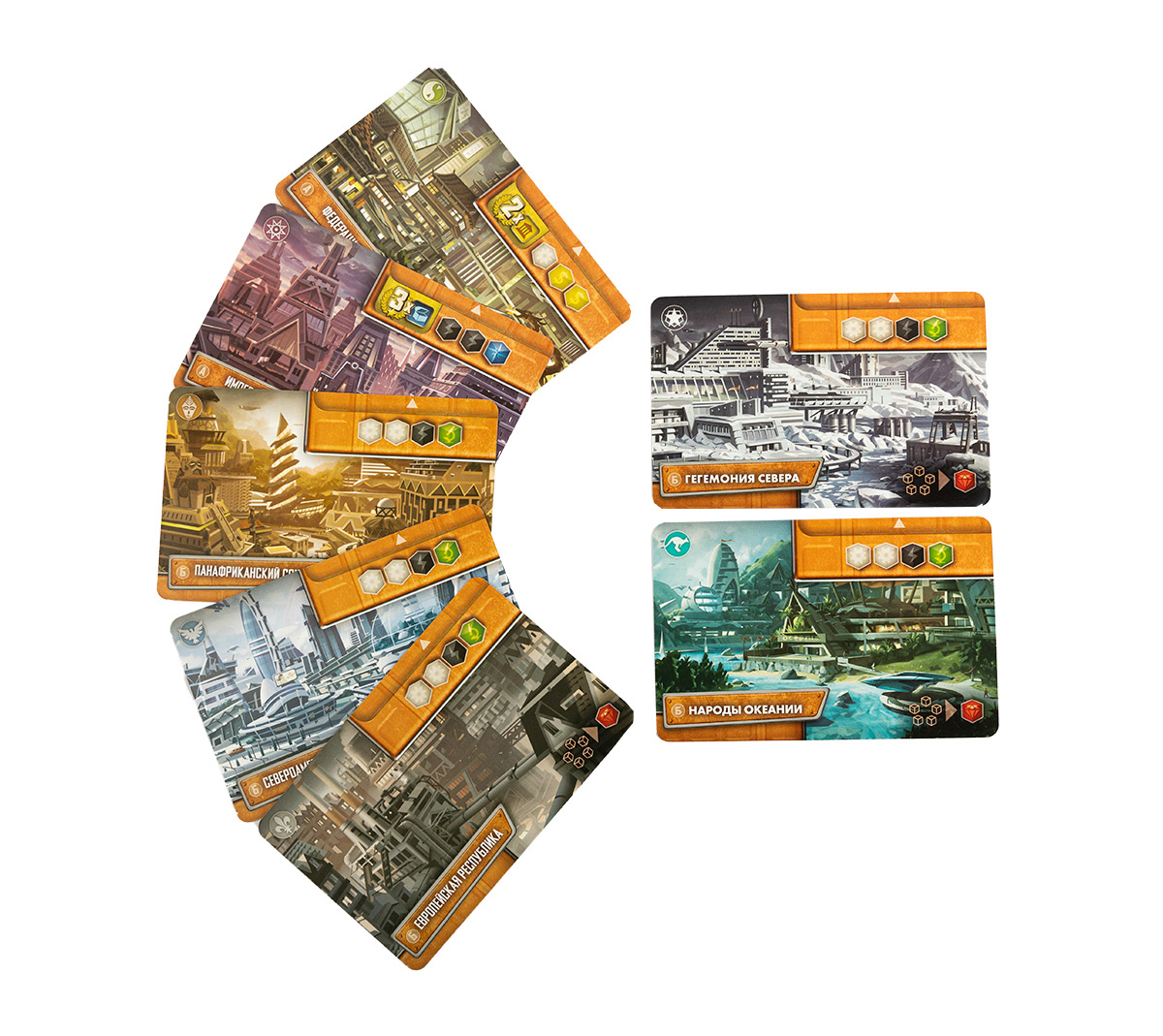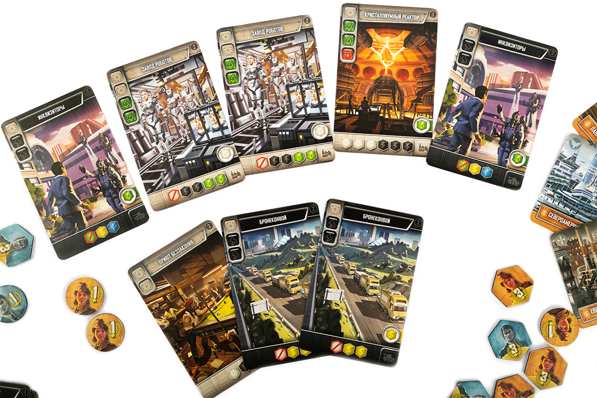 B фазу производства некоторые карты развития дополнения становятся причиной кризиса в добыче определённых ресурсов. За каждый перечёркнутый символ ресурса вычтите один соответствующий ресурс из числа произведённых.