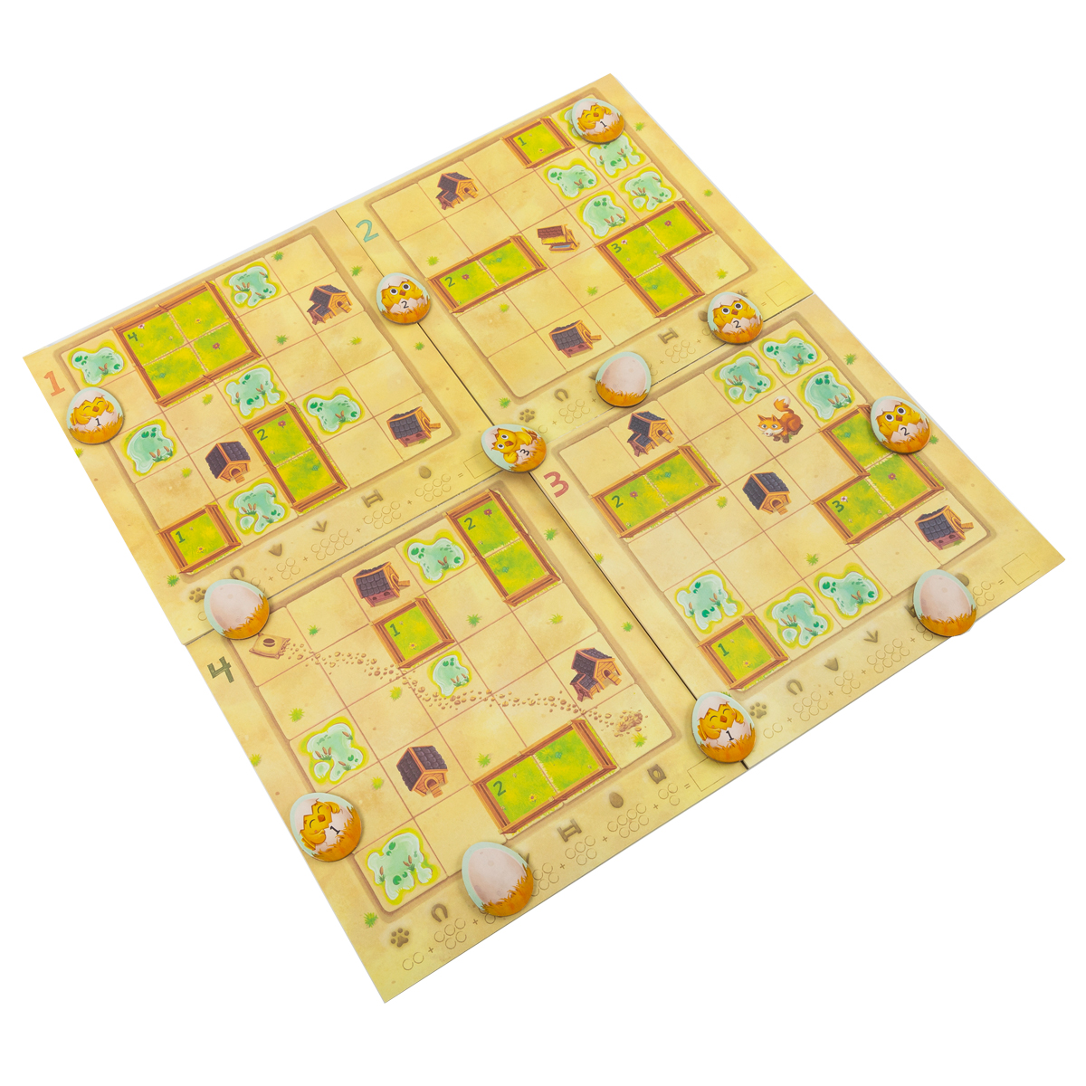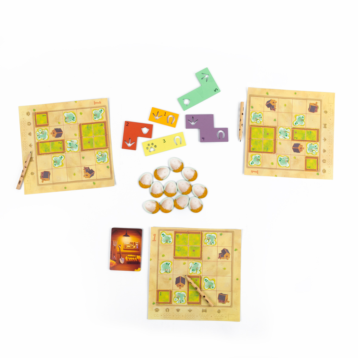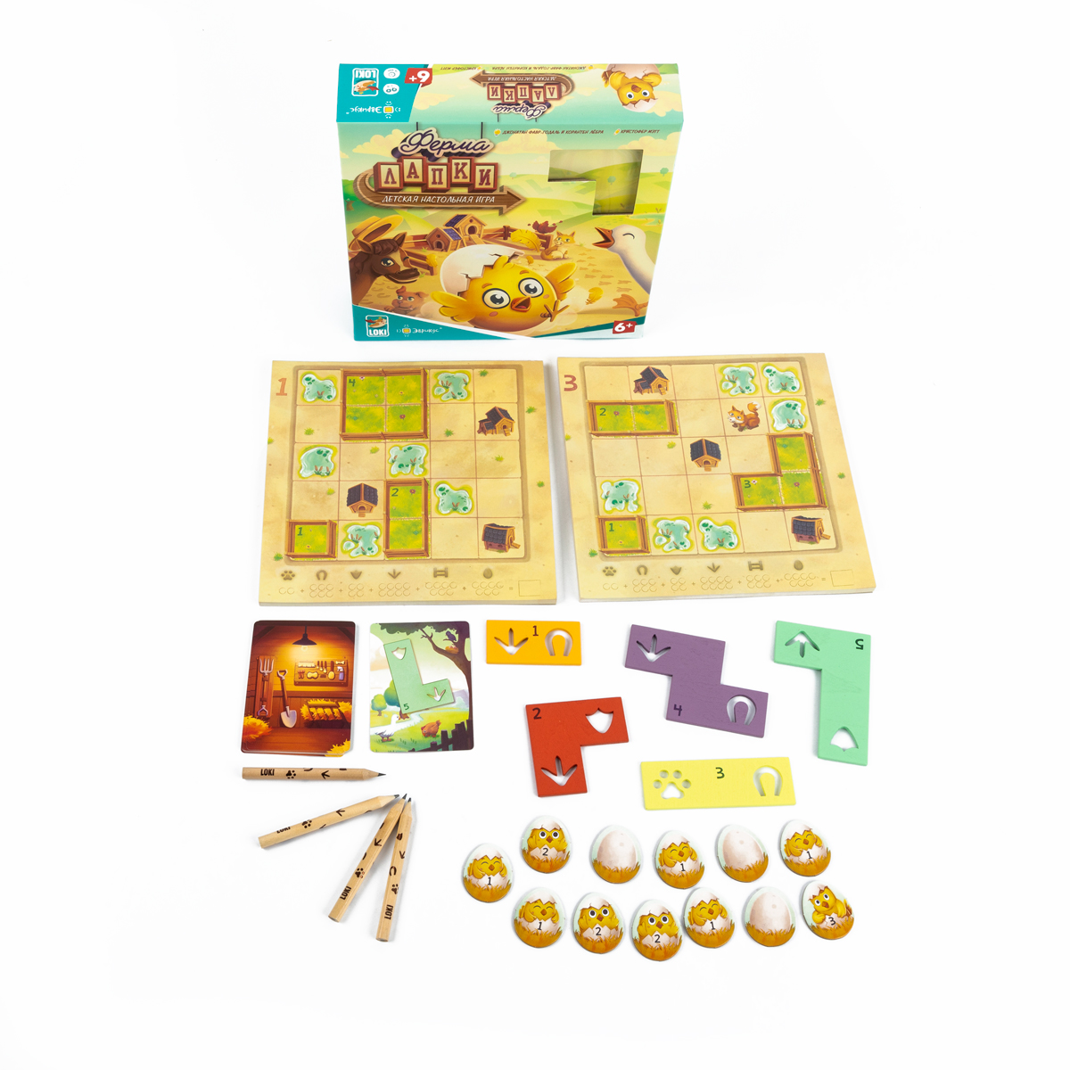 «Ферма Лапки» — это увлекательная детская настольная игра, в которой игроки становятся фермерами и обустраивают собственные дворы, размещая на них различных животных. Главная цель — создать самую счастливую и хорошо организованную ферму, правильно расположив всех питомцев, а делать это вы будете с помощью деревянных трафаретов со следами лапок обитателей фермы.