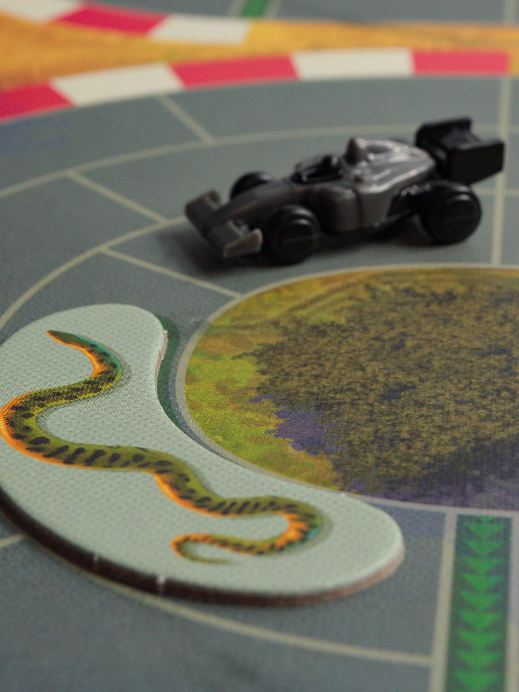 Трасса "гонка по саванне" - не только кишит дикими животными, которые мешают болидам, но и содержит множество узких мест, где придется проявить максимум навыков вождения.