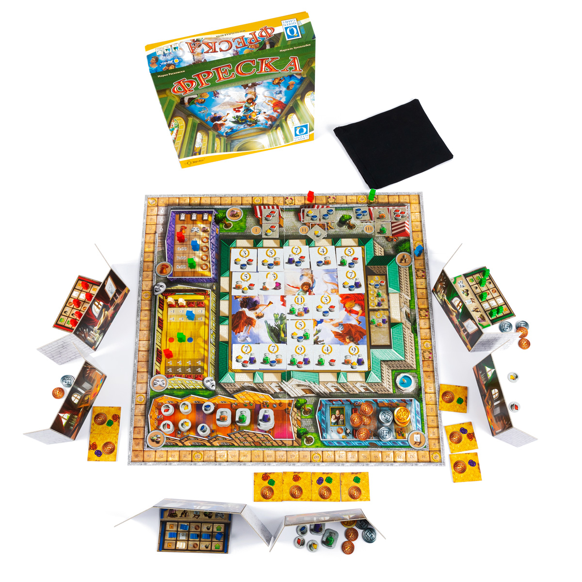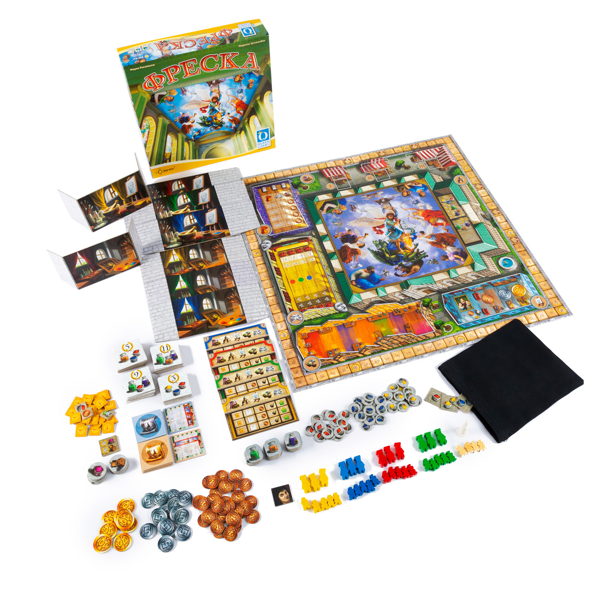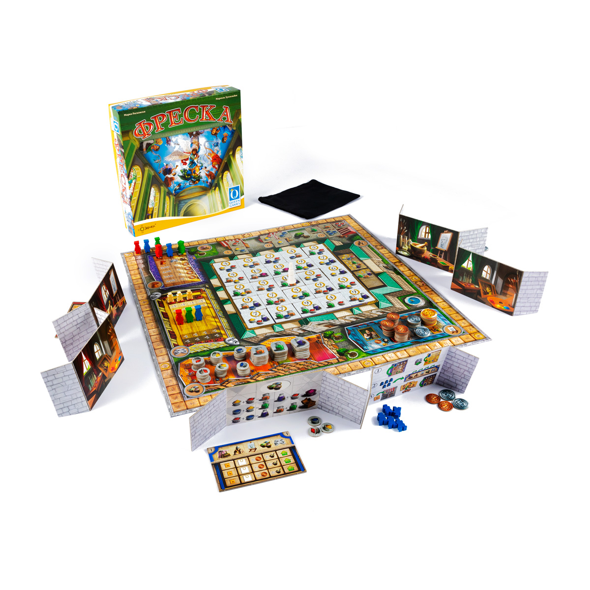 В это издание настольной игры «Фреска» входят 3 дополнительных модуля («Особые цвета», «Свитки» и «Благосклонность епископа»), которые обеспечивают ещё большее разнообразие игрового процесса.