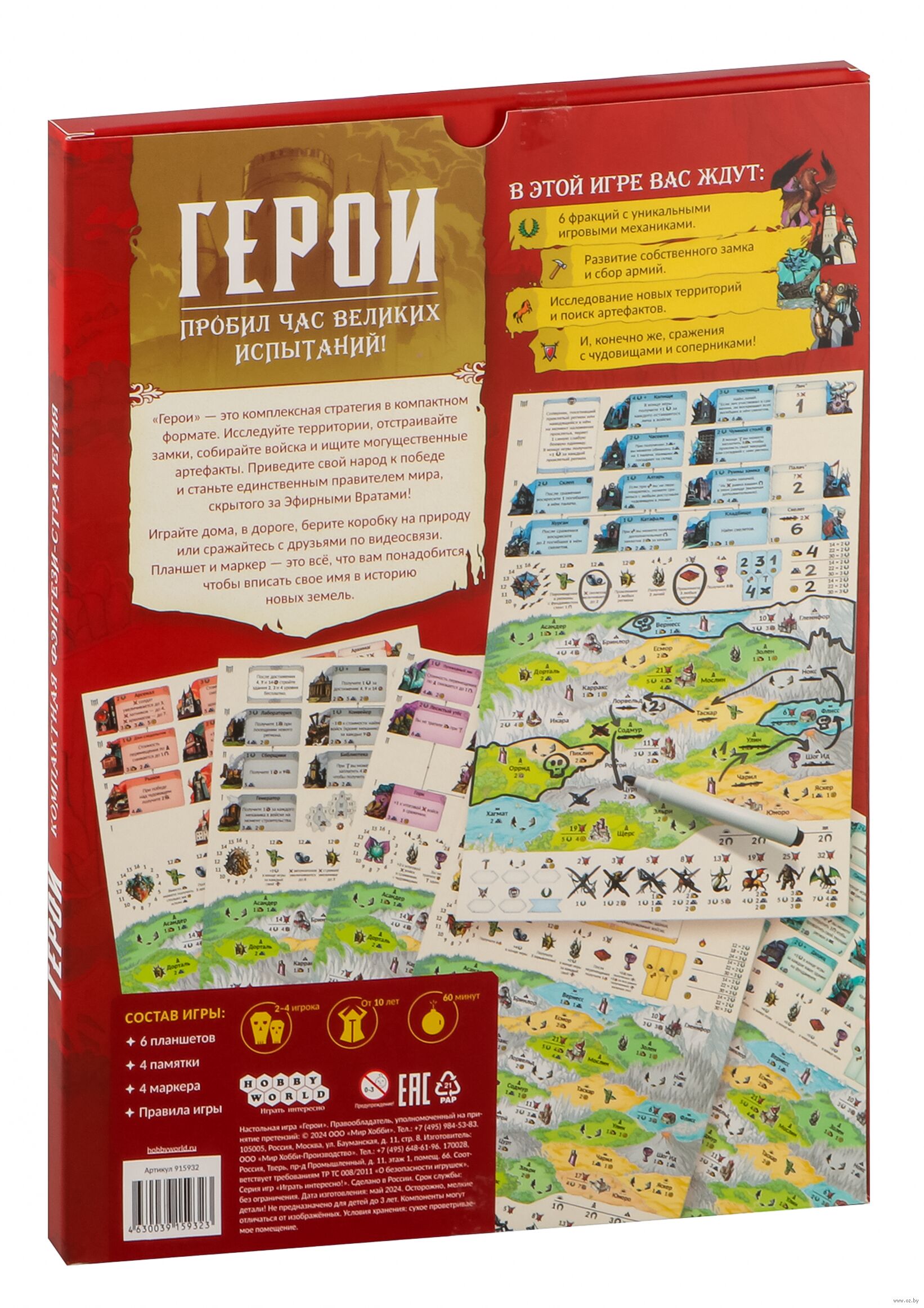 "Герои" – это комплексная стратегия в компактном формате, идеально подходящая для игры дома, в дороге и даже по видеозвонку. Вам понадобится всего лишь планшет и маркер, и вот ваше имя уже красуется среди великих завоевателей и правителей Эфирных Врат.