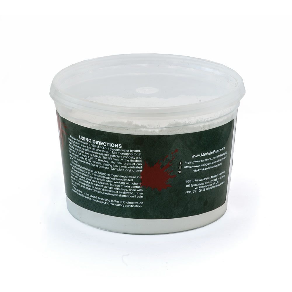 Подготовить массу в соотношении 3,5:1 гипс:вода, добавляя гипс в воду (не наоборот!). Тщательно перемешивать в течение минимум 2 минут, до приобретения массой достаточной вязкости и текучести, и отсутствия комков. Для перемешивания значительного количества рекомендуется использование электрической мешалки. Рекомендуется на первой стадии интенсивное перемешивание, а на завершающей медленное, для избежания захватывания пузырьков воздуха массой. Далее массу медленно заливают в форму на самое высокое место, избегая попадания и захватывания воздуха в ходе литья. Масса может быть дегазирована с помощью вакуума или же с помощью вибрации на соответствующем оборудовании. Время жизни готовой смеси не более 10 минут. Конечное изделие можно извлечь после 15-20 минут, оставляя его в хорошо проветриваемом месте, для завершения процесса сушки. Добавление в воду оксида железа позволяет окрасить смесь и увеличивает время жизни и времени до извлечения изделия из формы. После полного высушивания и окончания реакций любого типа (после приблизительно 8 часов или меньше, при условии сушки в проветриваемом месте или в печи с горячим воздухом) конечные изделия не разлагаются и не деформируются даже при длительном контакте с водой.