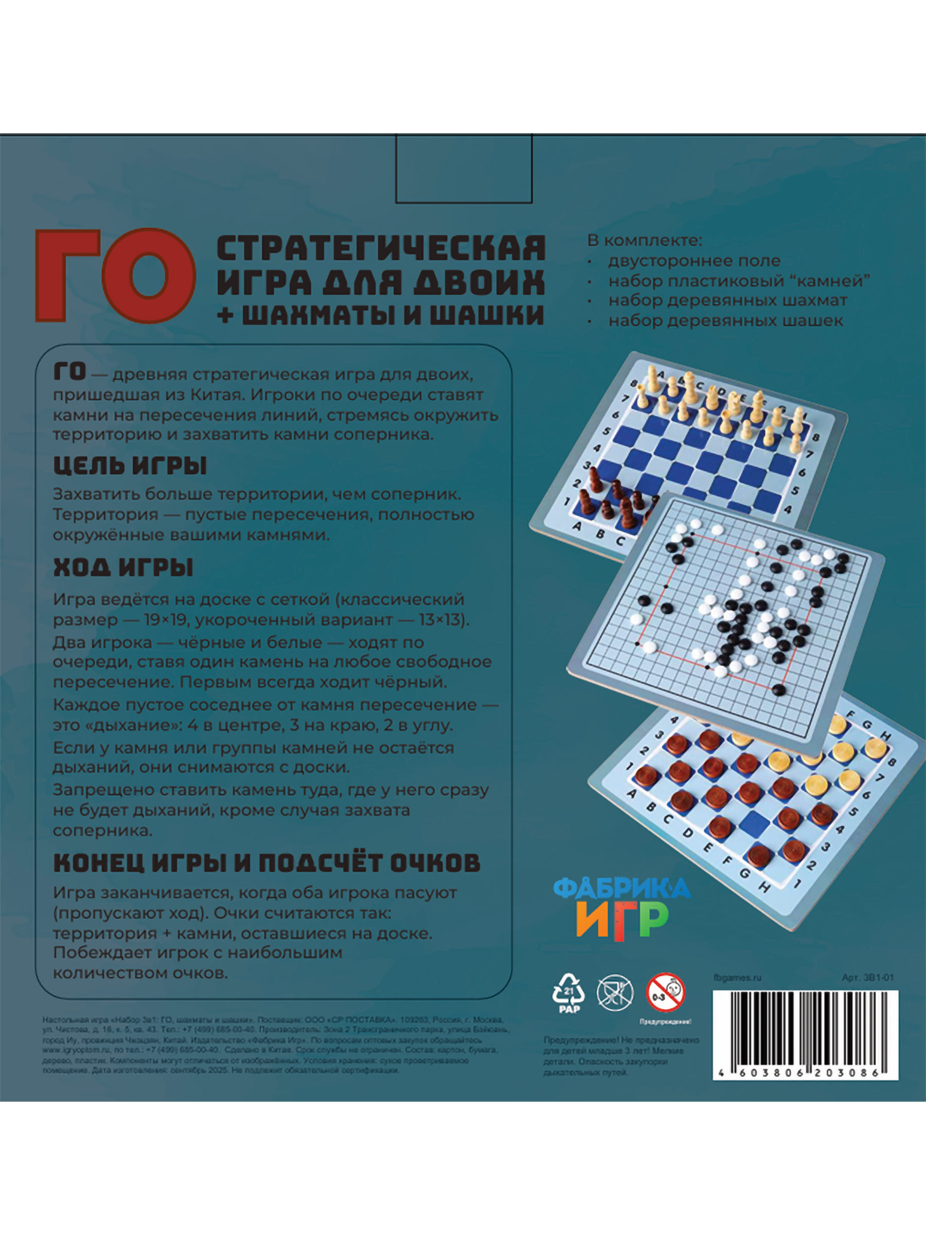 Го: стратегическая игра для двоих + шахматы и шашки (Фабрика Игр)