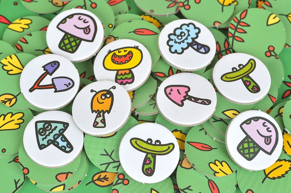 - Делим трофеи. Счастливчик, который нашёл заветный гриб, забирает себе в корзинку два любых жетона из тех, что успел вытянуть. Остальные игроки выбирают себе по одному.
