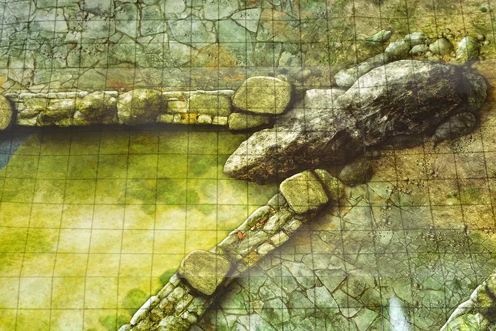 В Голарионе, мире Pathfinder, то и дело попадаются различные сооружения. В том числе исследователи часто встречают на своём пути мосты. Порой они являются стратегически важными, активно использующимися строениями, порой – дряхлыми развалинами, останками древних защитных сооружений, не прошедших проверку испытанием времени или разрушенных в ожесточённых боях. На этом двухстороннем поле вы найдёте сразу два моста.