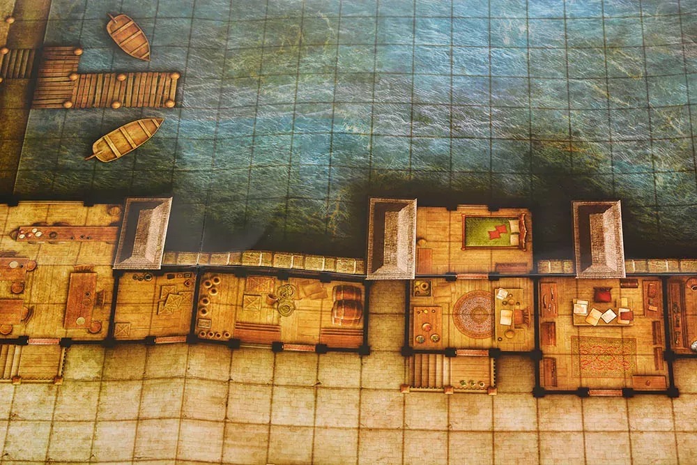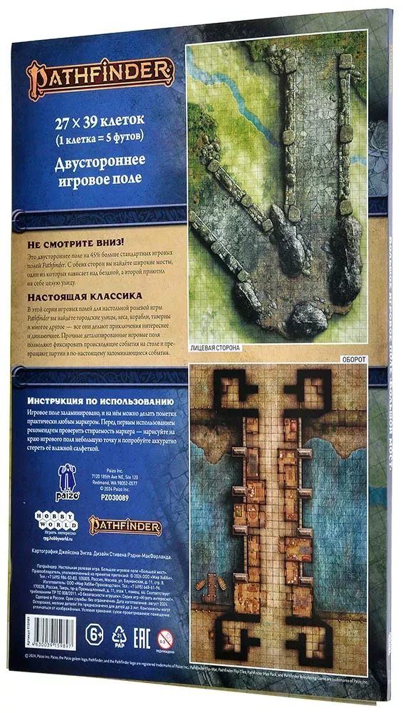 С одной стороны – мост, нависающий над бездной. С другой – целая улица с домами. Обе иллюстрации позволяют разыгрывать множество различных игровых ситуаций, а благодаря крупному формату (это поле на 45% больше стандартных полей Pathfinder!) вы сможете эффективно использовать каждый его сантиметр и просто получать эстетическое удовольствие.