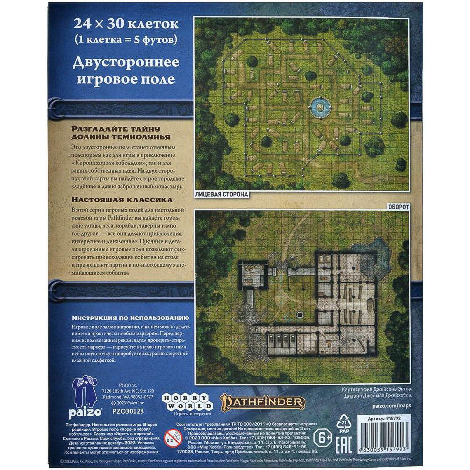 Раскройте тайну Долины Темнолунья вместе с двухсторонним игровым полем. Оно идеально подойдёт для приключения "Корона короля кобольдов" и для реализации уникальных задумок и сюжетов... На одной из сторон карта представляет старинное городское кладбище, а на другой – заброшенный монастырь.