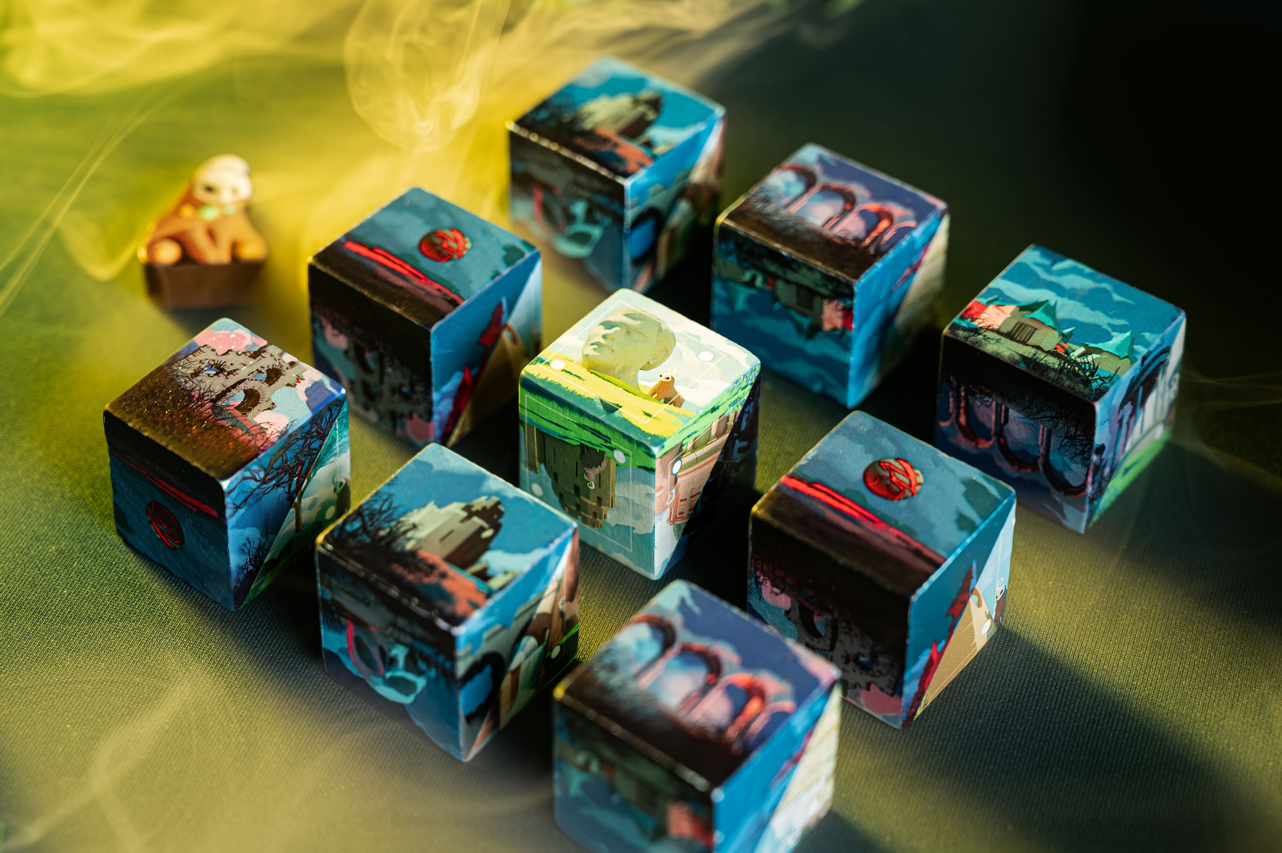Хорошо проработанные 3D-элементы — кубики с разными цветовыми гранями — создают эффект живого освещения и теней, делая игру одновременно визуально выразительной и стратегически глубокой.