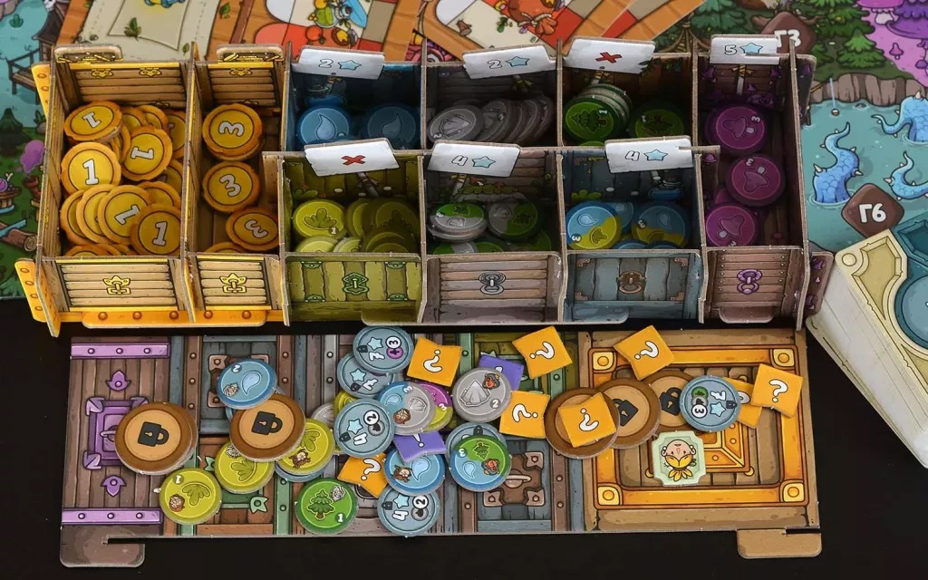 Фаза обновления завершает раунд: игроки возвращают жетоны в мешки, обновляют рынок предметов и готовятся к новому раунду.