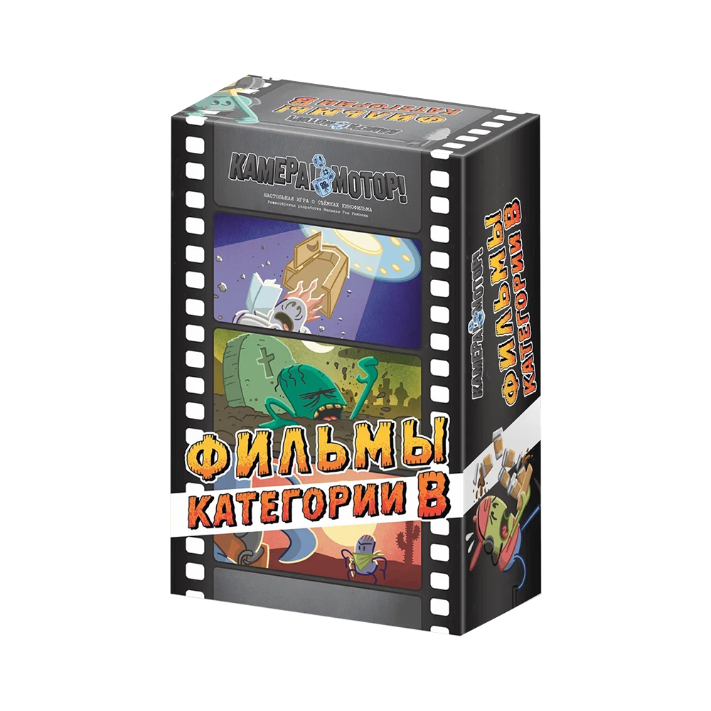 Перед вами большое дополнение к игре «Камера! Мотор!» – «Фильмы категории B». Используя основные принципы и элементы базовой версии, оно вводит новые правила и различные изюминки, которые сделают партии более вариативными.