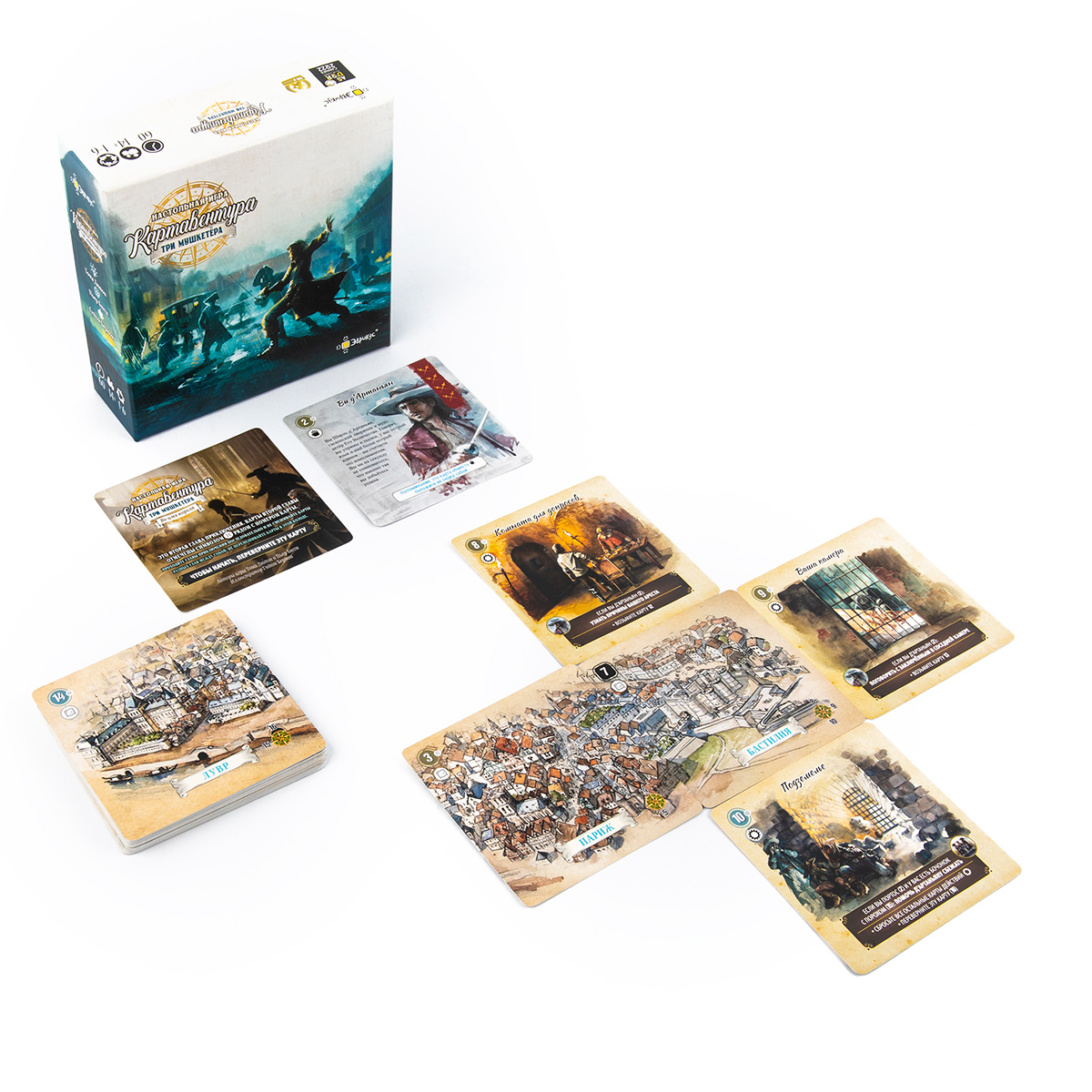 В этих играх нет буклета с правилами, достаточно просто следовать указаниям на карточках. Зато в каждой игре серии много иллюстраций и текста, передающих атмосферу эпохи. А также в коробке вы найдёте дополнительный буклет с исторической справкой о том времени, куда перенесла вас игра.