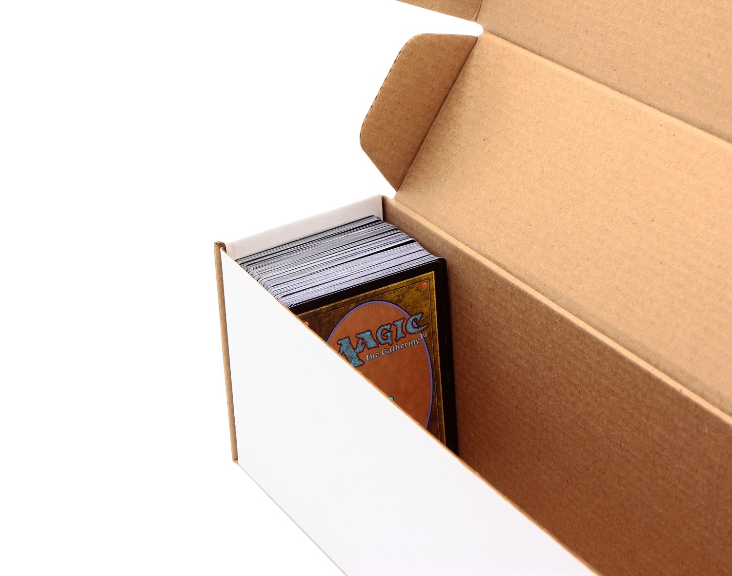 Большая картонная коробка отлично подойдет для хранения и архивирования порядка 1200-1300 (около 1000 в стандартных протекторах) карт Magic: The Gathering, Yu-Gi-Oh, Берсерк, Wow и любых других ККИ.