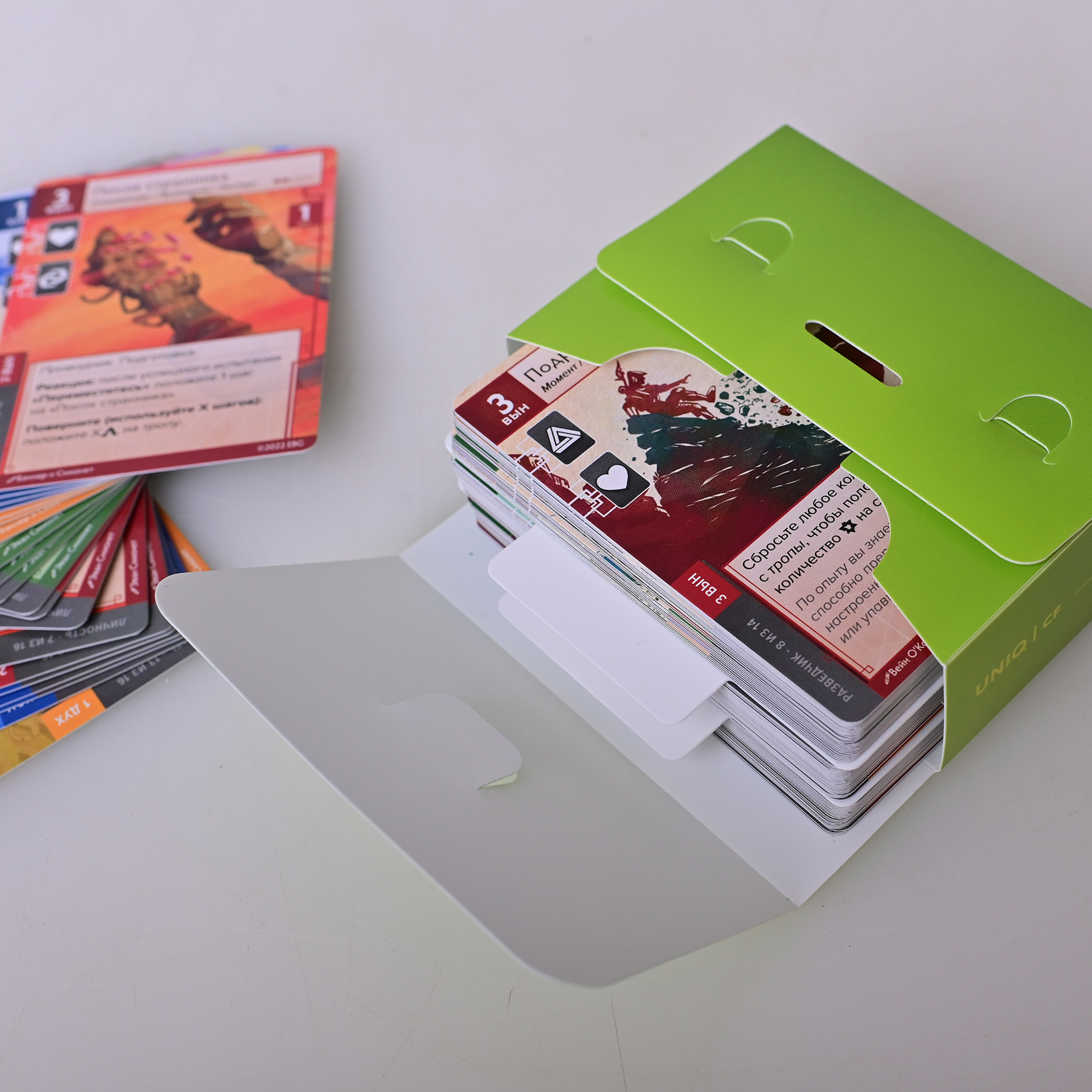 Укомплектован 2 белыми разделителями. Вмещает без протекторов до 80 карт / в протекторах 60 карт.