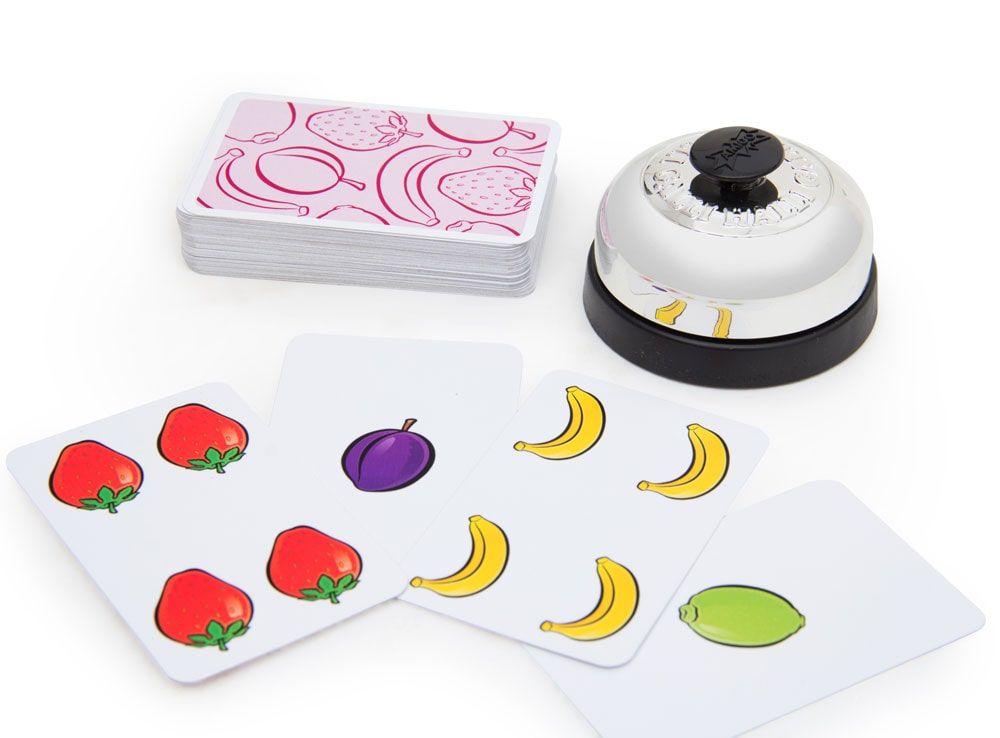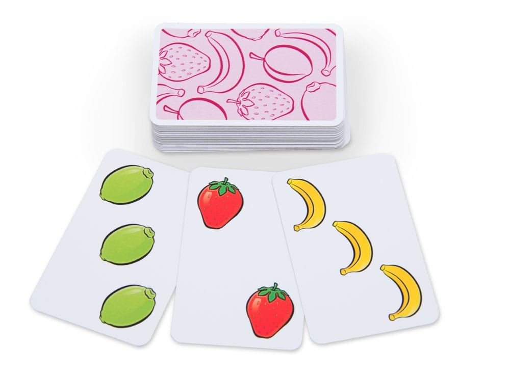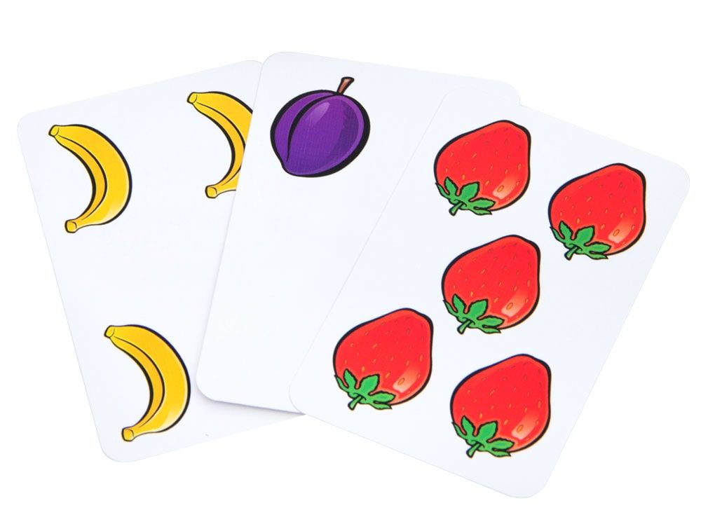 - 56 карт с изображениями одного их четырёх видов фруктов (банан, клубника, лайм, слива в количестве от 1 до 5)