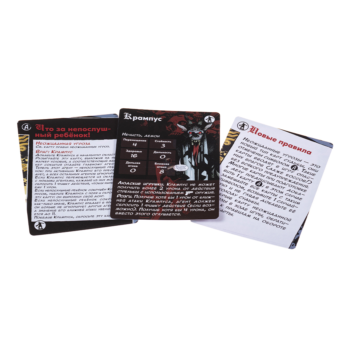 Вместе с Крампусом в игре появляется новое правило «Неожиданная угроза» — это новый тип карт судьбы, которые вводят в игру опасных врагов и даже боссов без всякого предупреждения! Крампус воспринимает себя как демона, поэтому, не являясь по своей сути боссом, он может бросить вызов агентам в этой ипостаси вместо Бабы-Яги! В качестве своей жертвы Крампус выбирает главного агента, ласково называя его «непослушный ребенок». Только этот агент будет целью Крампуса. Однако, если «любимчик» Крампуса будет повержен не им, то тот впадет в ярость — теперь любой агент может стать его мишенью с возросшей ближней атакой!