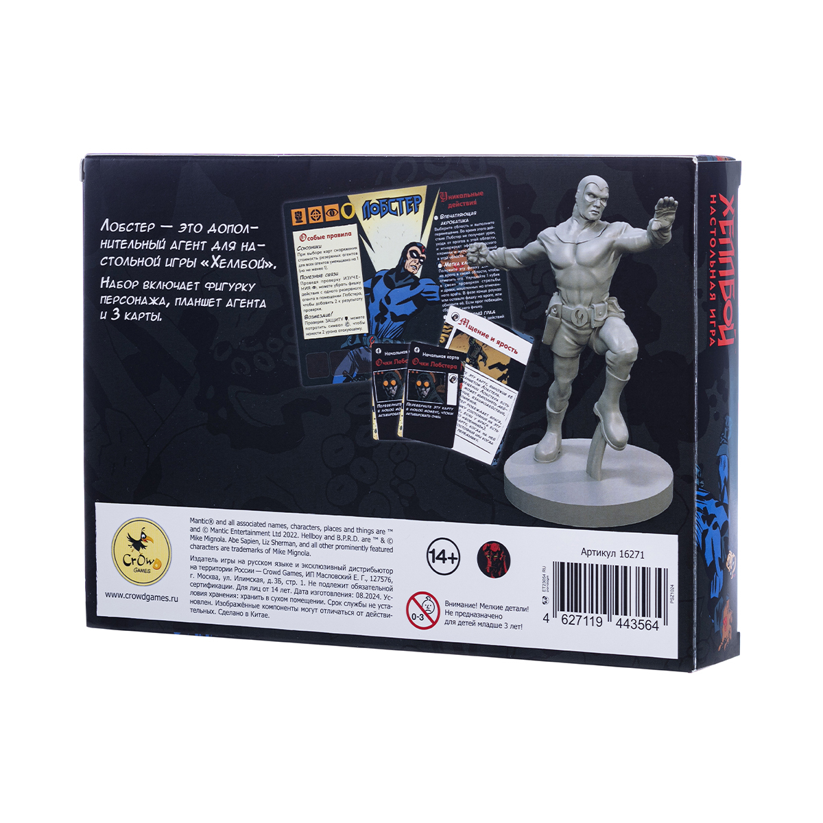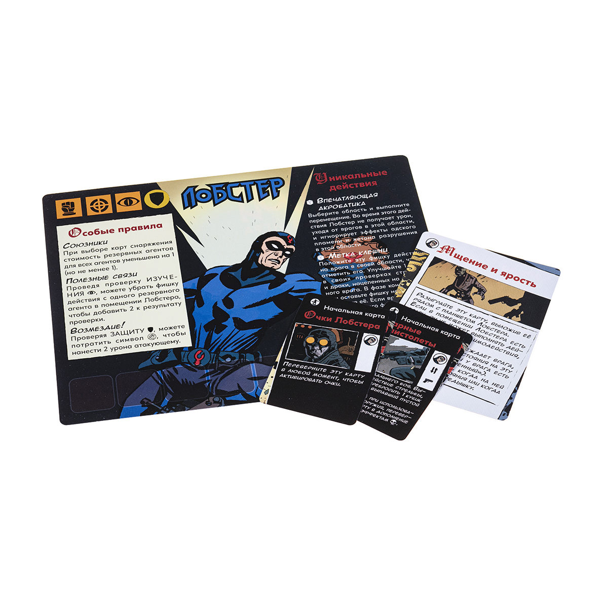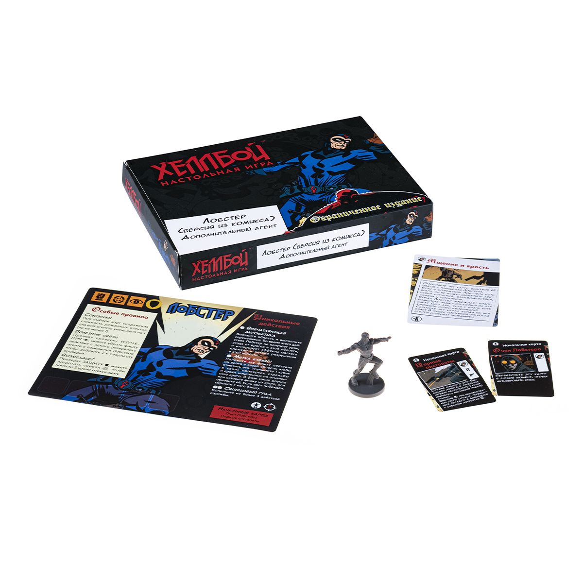 Это мини-дополнение — альтернативная комиксовая версия лимитированного тиража из дополнения «Хеллбой. Червь-победитель» с практически полностью переработанными особыми правилами и уникальными действиями персонажа. С помощью особого правила «Союзники» стоимость всех резервных агентов для всех игроков уменьшается на 1, а «Полезные связи» помогут повысить результат проверки изучения на два, если вы потратите фишку действия с резервного агента. Новое уникальное действие Лобстера Джонсона — «Впечатляющая акробатика». С его помощью агент игнорирует урон перемещаясь в другую область, уходя от врагов.