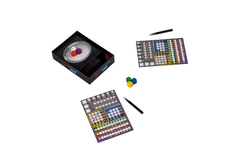В состав игры входит только 6 кубиков, игровой блокнот и 4 маркера, но, поверьте, этого хватит, чтобы увлечь вас и ваших друзей в многочасовое соревнование.