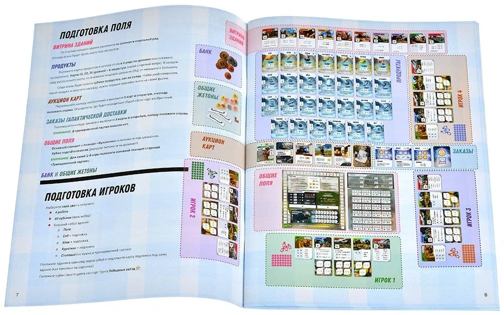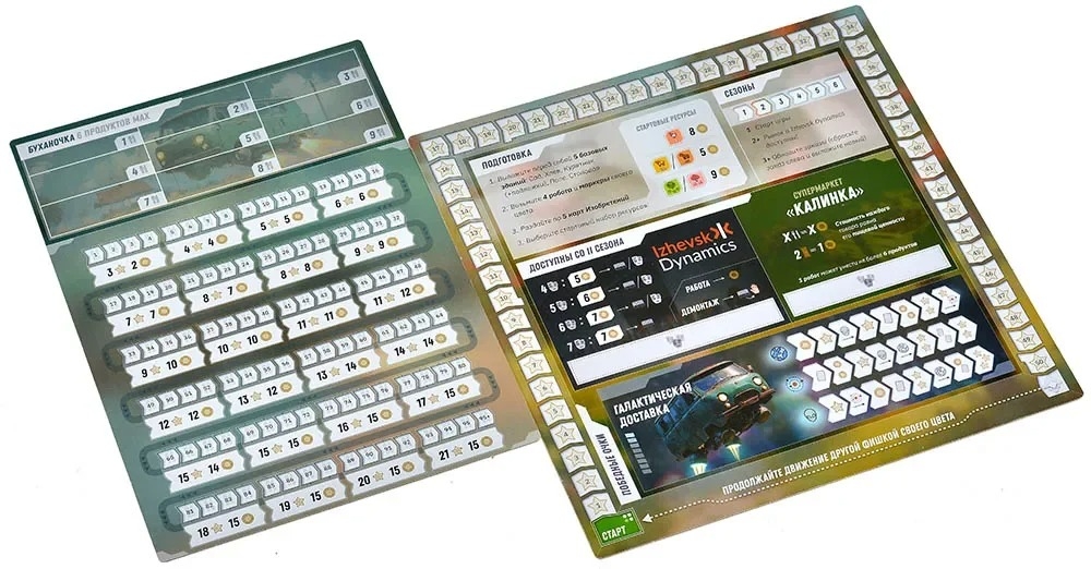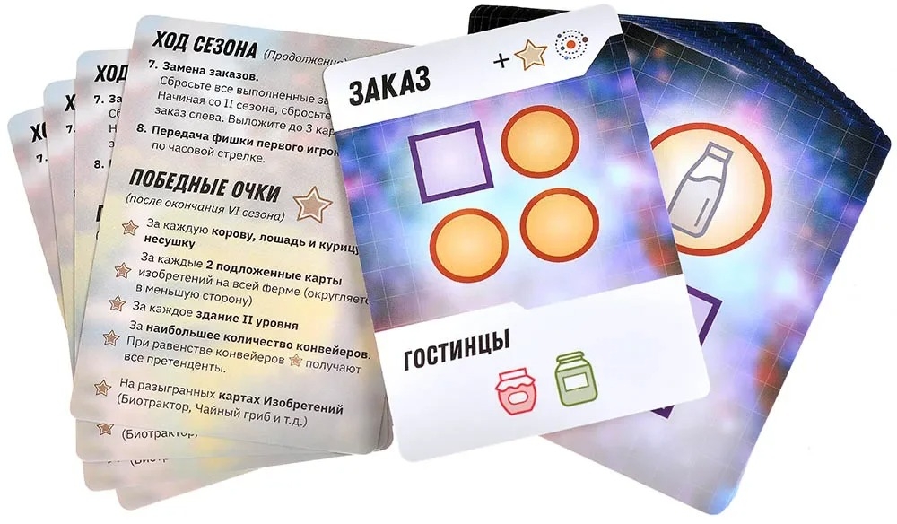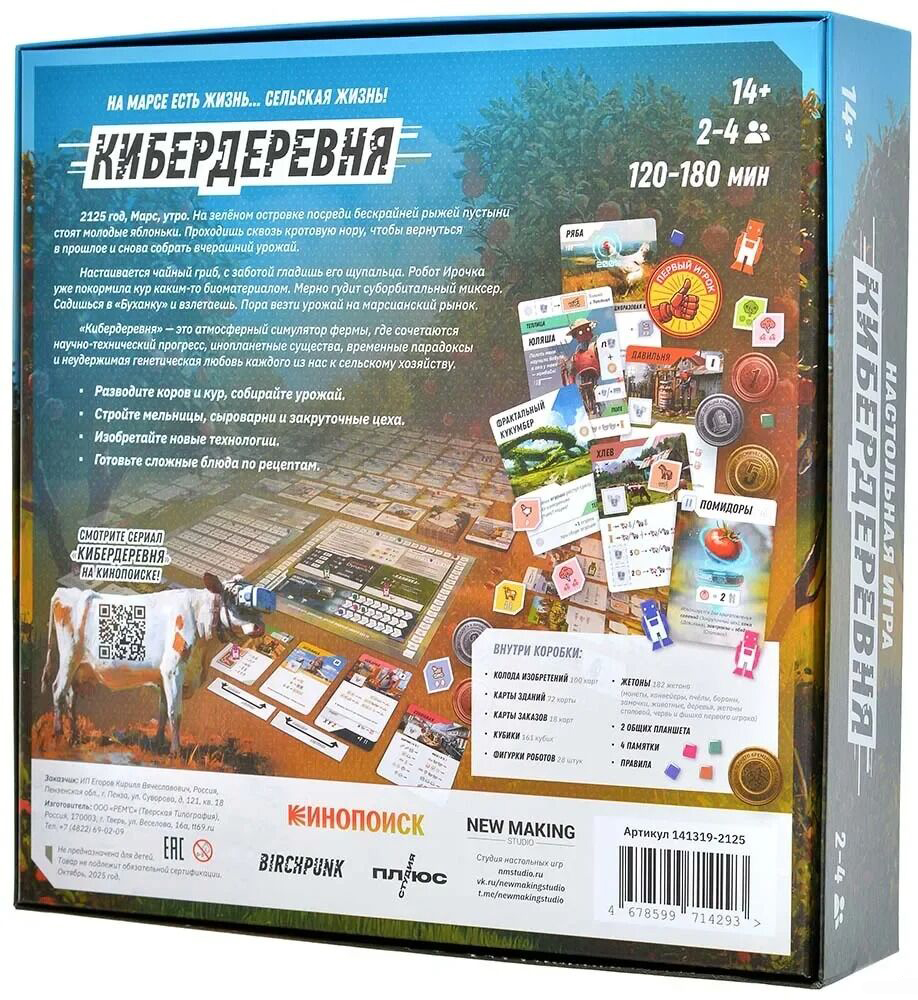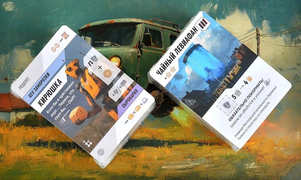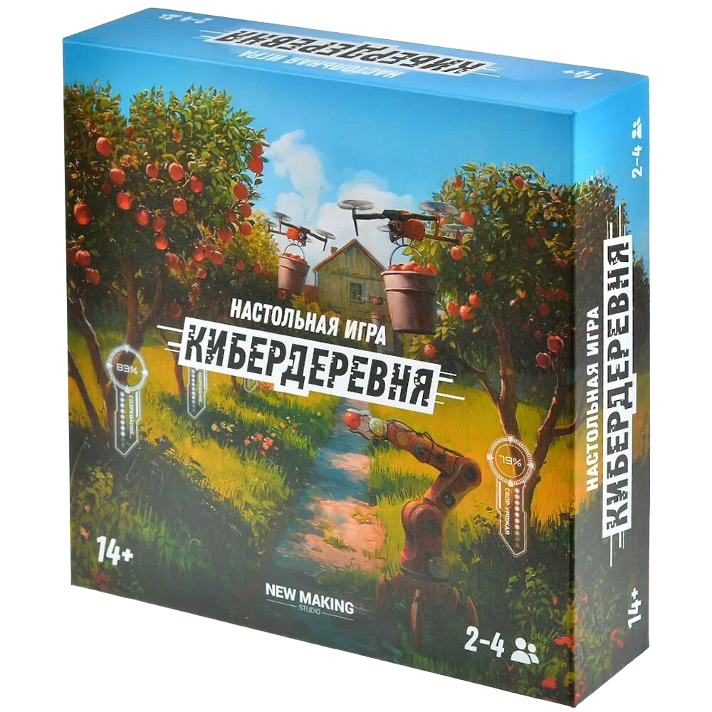 Я сажаю межпространственные огурцы. Так и начинается "Кибердеревня" – настолка, которая переносит вас в мир той самой душевной сай-фай-деревушки из одноимённого сериала, где высокие технологии встречаются с простыми радостями сельской жизни. Тут соседствуют инопланетные существа, временные парадоксы, квантовые изобретения и неизбывная тяга любого земного организма копаться в грядках. Каждый игрок становится фермером (и не простым, а КИБЕРфермером), который пытается превратить свой марсианский участок в уютное хозяйство. Правила игры работают так же, как в жизни: требуется молоко – заведите корову; нужен хлеб – постройте мельницу и пекарню; хотите собрать урожай – отправляйте роботов гнуть железные спины в полях. Разница лишь в том, что в вашем хозяйстве могут применяться гравитационный колодец, теория струн и бизон Хиггса (да-да, это не опечатка!), от которого бурёнки слегка теряют самообладание.