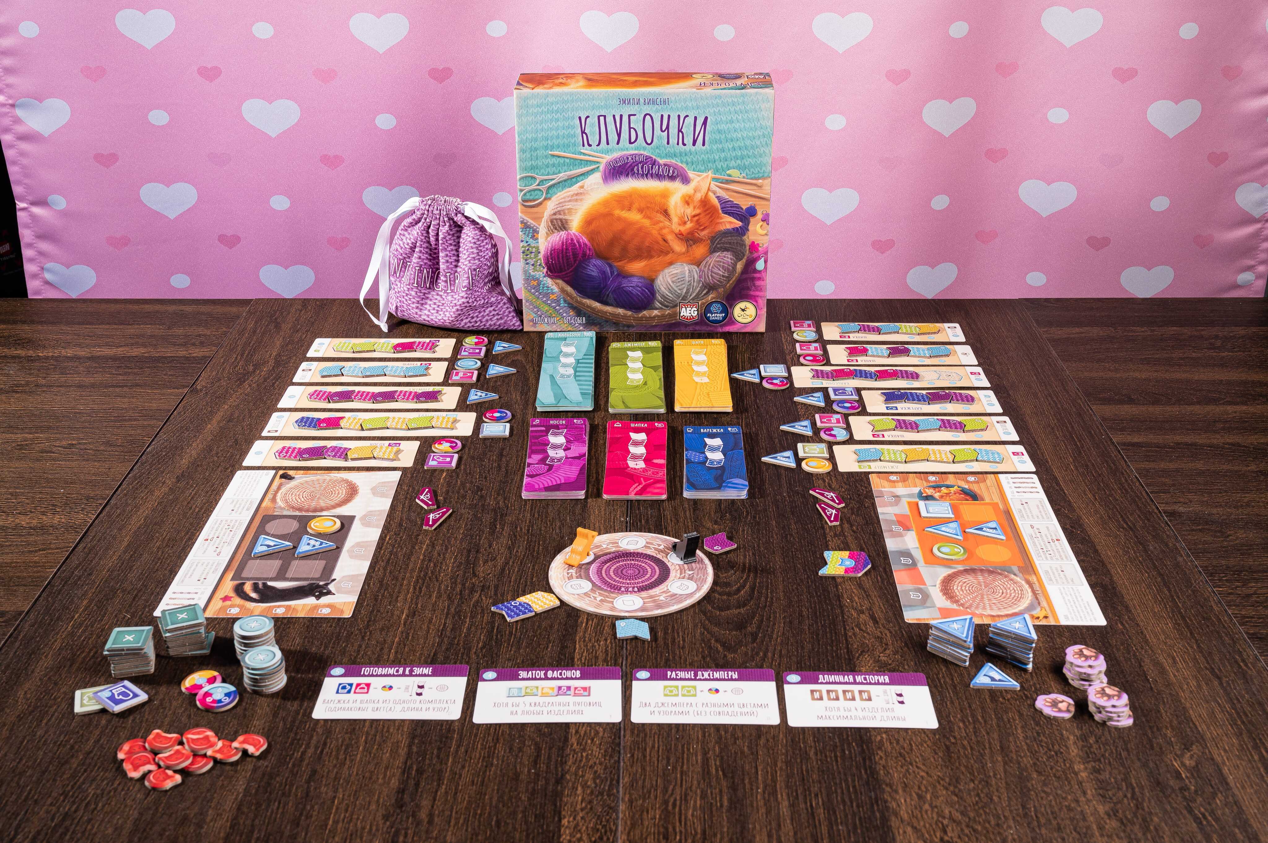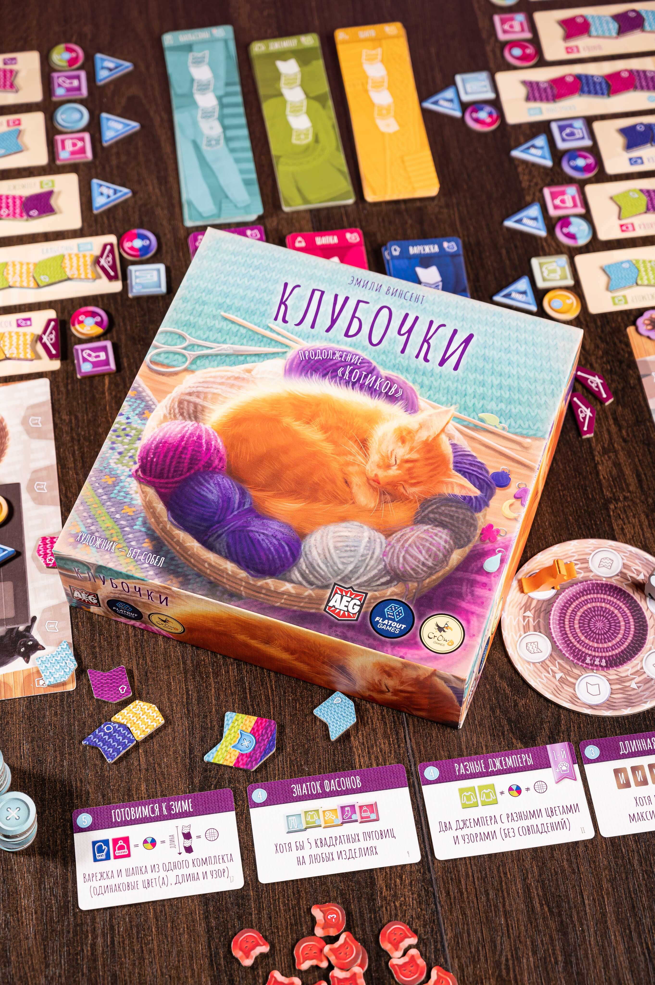Приятный бонус: некоторые игровые компоненты «Клубочков» можно использовать в игре «Котики», чтобы сделать партии разнообразнее!