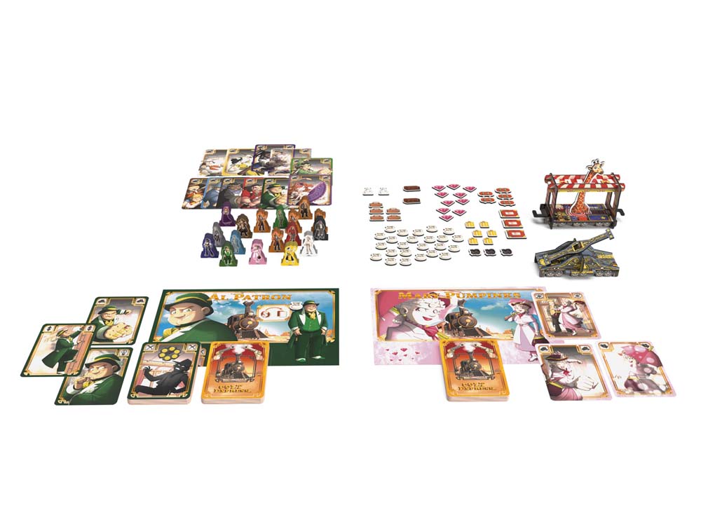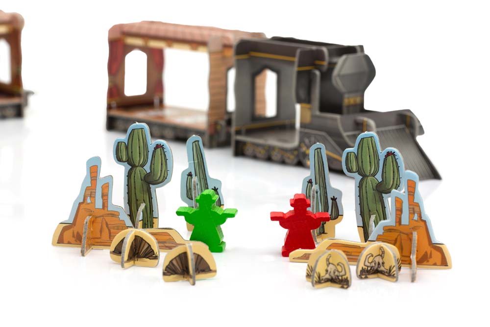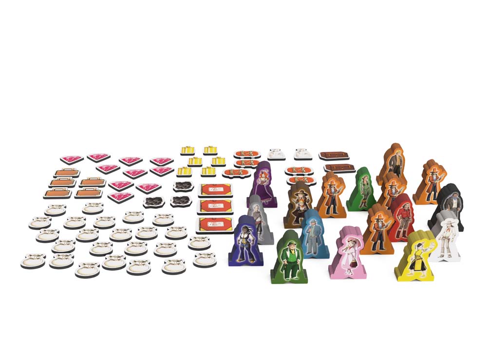 Смешались в кучу кони, люди. В этой игре вам предстоит играть за бандита, грабящего поезд одновременно с другими бандитами. Каждый раунд игроки выкладывают на стол особые карты действий из собственных колод: с помощью таких карт бандиты смогут перемещаться от вагона к вагону, залезать на крыши и спускаться с них, грабить, стрелять друг в друга или бросаться в рукопашную в попытке отнять уже награбленное. Но всё дело в том, что все действия программируются перед началом раунда! Тщательно планируйте ваши перемещения по картонному поезду, состоящему из локомотива и такого количества вагонов, сколько игроков за вашим столом. Ведь в разных вагонах поезда путешествуют пассажиры с разным достатком.