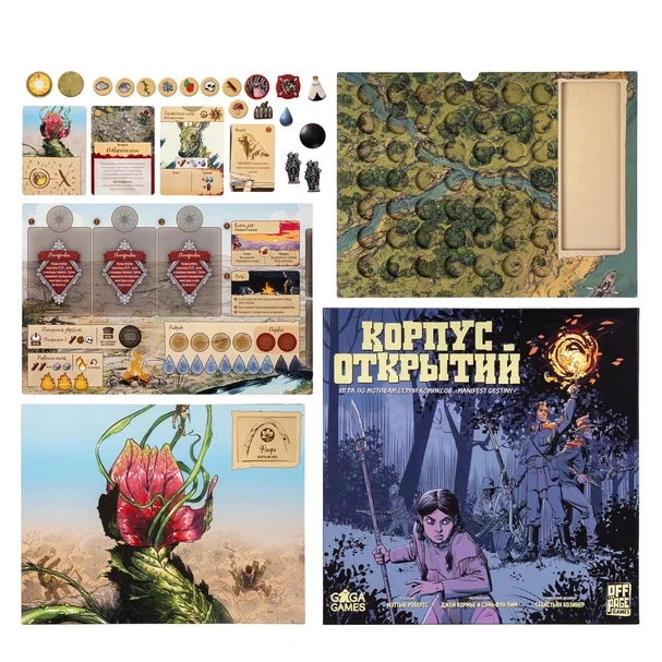 Корпус Открытий — дедуктивная кооперативная игра на выживание. Вместе с командой первооткрывателей (или в одиночку) вам предстоит исследовать дикие земли Америки, обращаться за поддержкой к коренным племенам, принимать непростые решения и бороться с чудовищами!