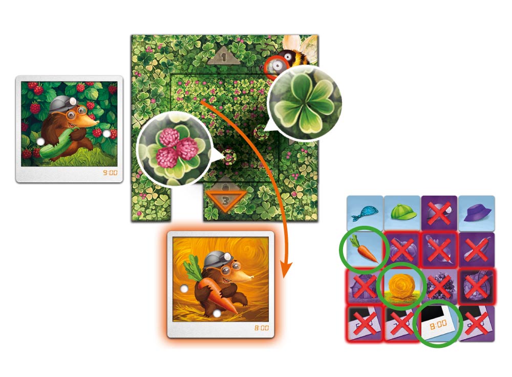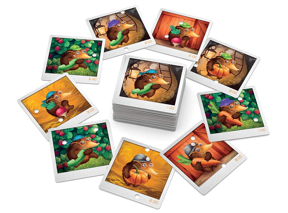 После каждого хода сыщика шмель может проявить "коварство крота" – передвинуть карточку овоща в соседнюю норку! Это значит, что даже если вы уже где-то видели морковку, на следующем ходу её там может не оказаться.