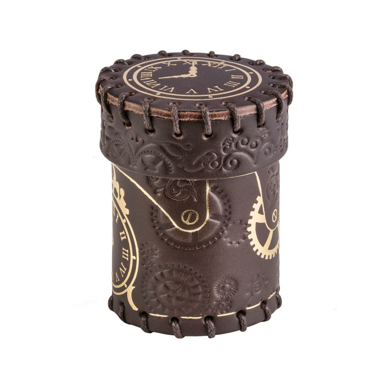 Кожаный стакан для кубиков Steampunk Brown & golden Leather Dice Cup (CSTE102)